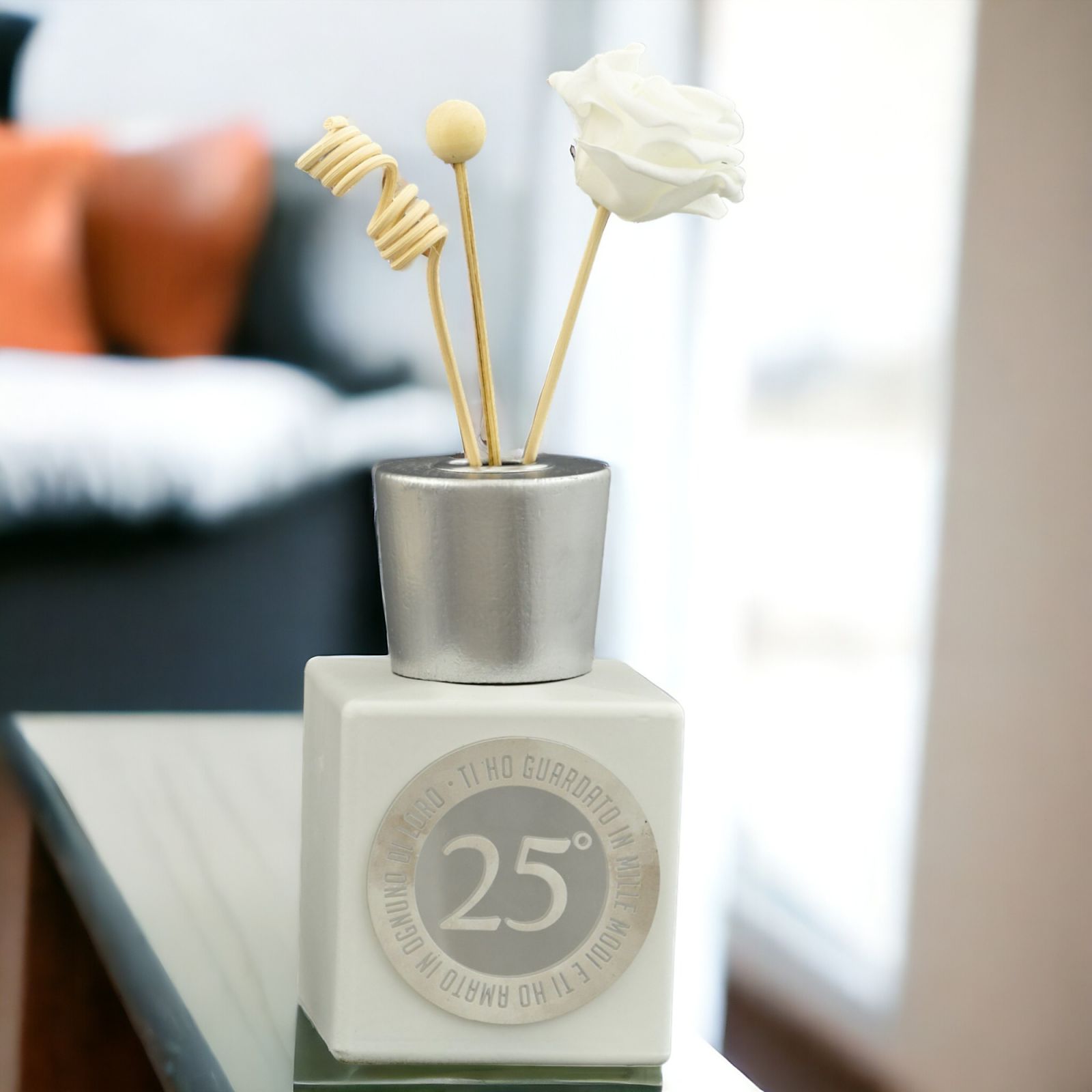 Queste bomboniere sono un oggetto per ricordare l'importante anniversario. E' un modo per mostrare ai tuoi invitati l'amore che ci metti nei preparativi. Il profumatore diffonderà nell'ambiente un aroma gradevole donando un'atmosfera di serenità e benessere.