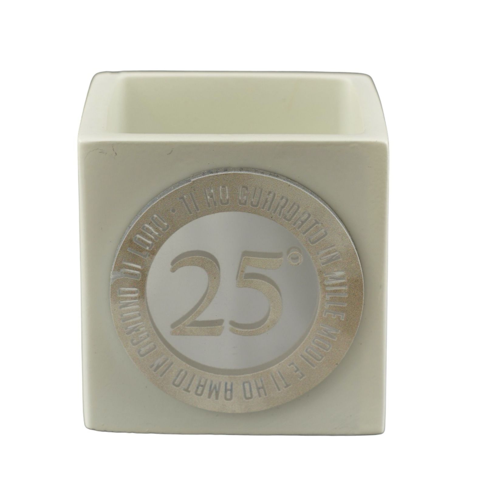 Se sei alla ricerca di un dono originale e utile, questo vasetto per piante è la scelta ideale. Caratterizzato dal numero 25, questo regalo è perfetto per celebrare un 25° anniversario, accompagnato da una frase davvero speciale: "Ti ho guardato in mille modi e ti ho amato in ognuno di loro".