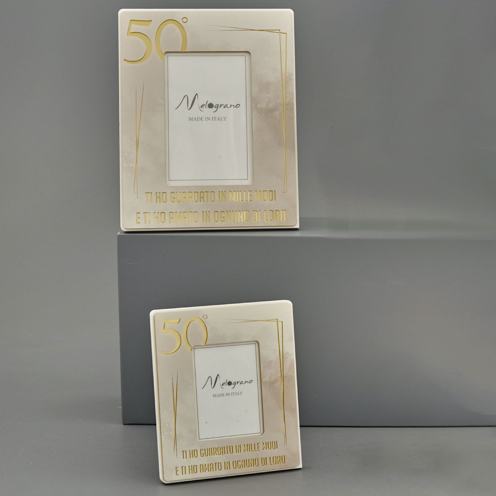 Celebra l'amore duraturo con il nostro elegante portafoto dedicato al 50° anniversario, arricchito dalla scritta: "Ti ho guardato in mille modi e ti ho amato in ognuno di loro". Un regalo unico per le nozze d'oro.