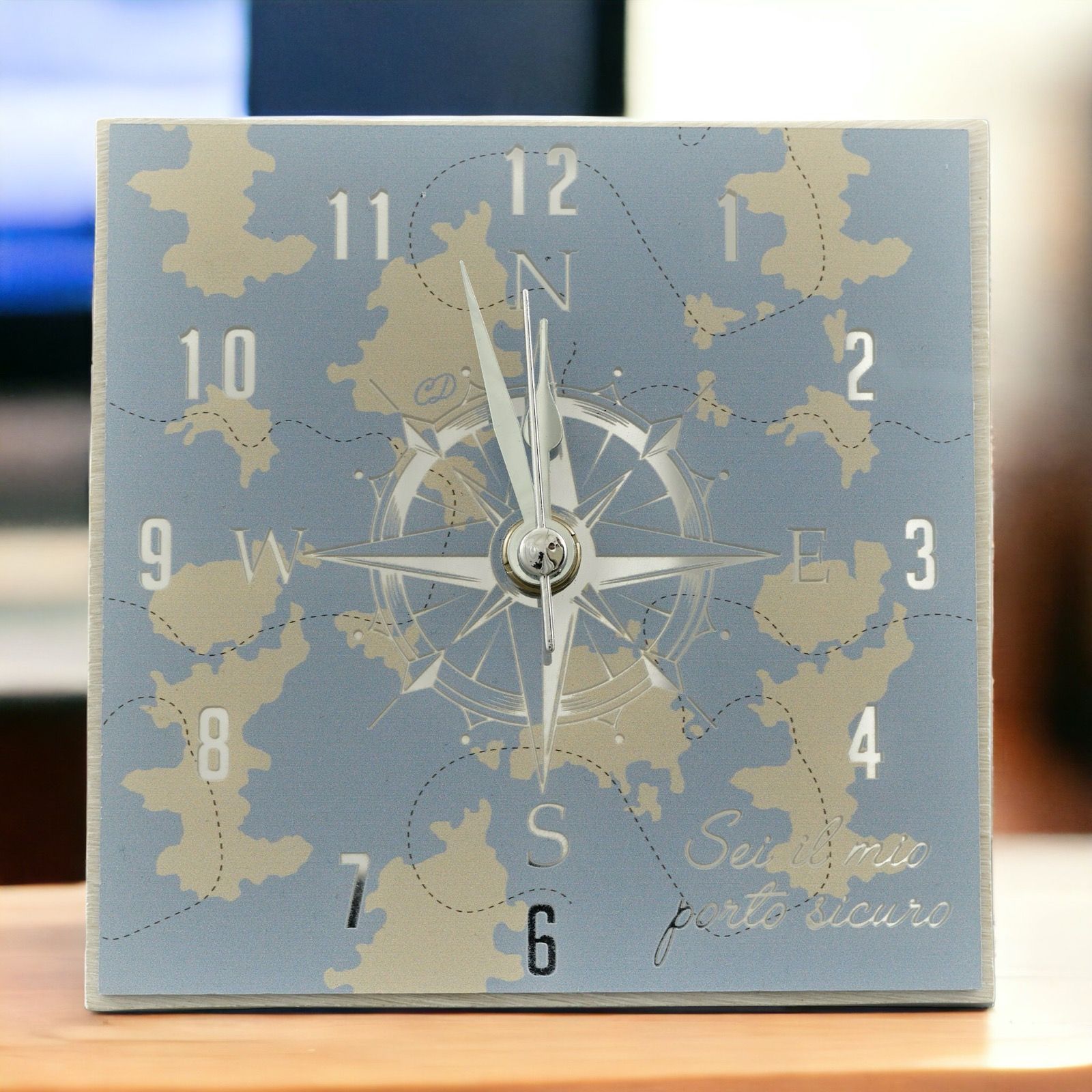 Scopri la bomboniera perfetta per ogni occasione con il nostro orologio a tema viaggio. La delicata rosa dei venti sulla mappa beige evoca avventure e il messaggio inciso "Sei il mio porto sicuro" lo rende un dono ideale per Prima Comunione, Cresima, Matrimonio, Anniversario, 18 anni, o eventi a tema mare.