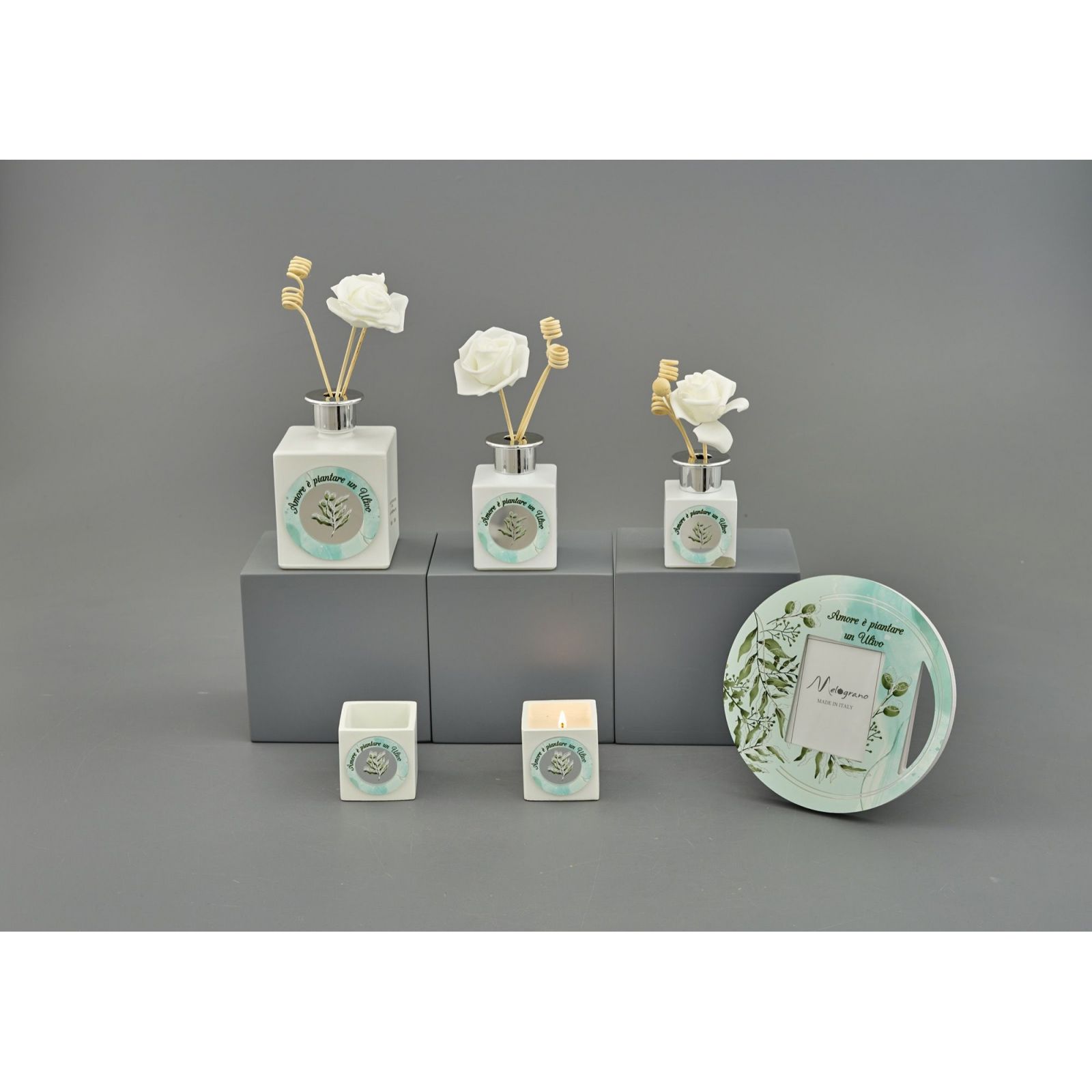 Regalare un profumatore ambiente con al centro un ramoscello di ulivo può significare molte cose: fortuna, amore, appartenenza, unione. Se stai cercando bomboniere complete ed utili, non devi guardare oltre. La bomboniera con profumatore ambiente con al centro un ramoscello di ulivo è la scelta ideale!