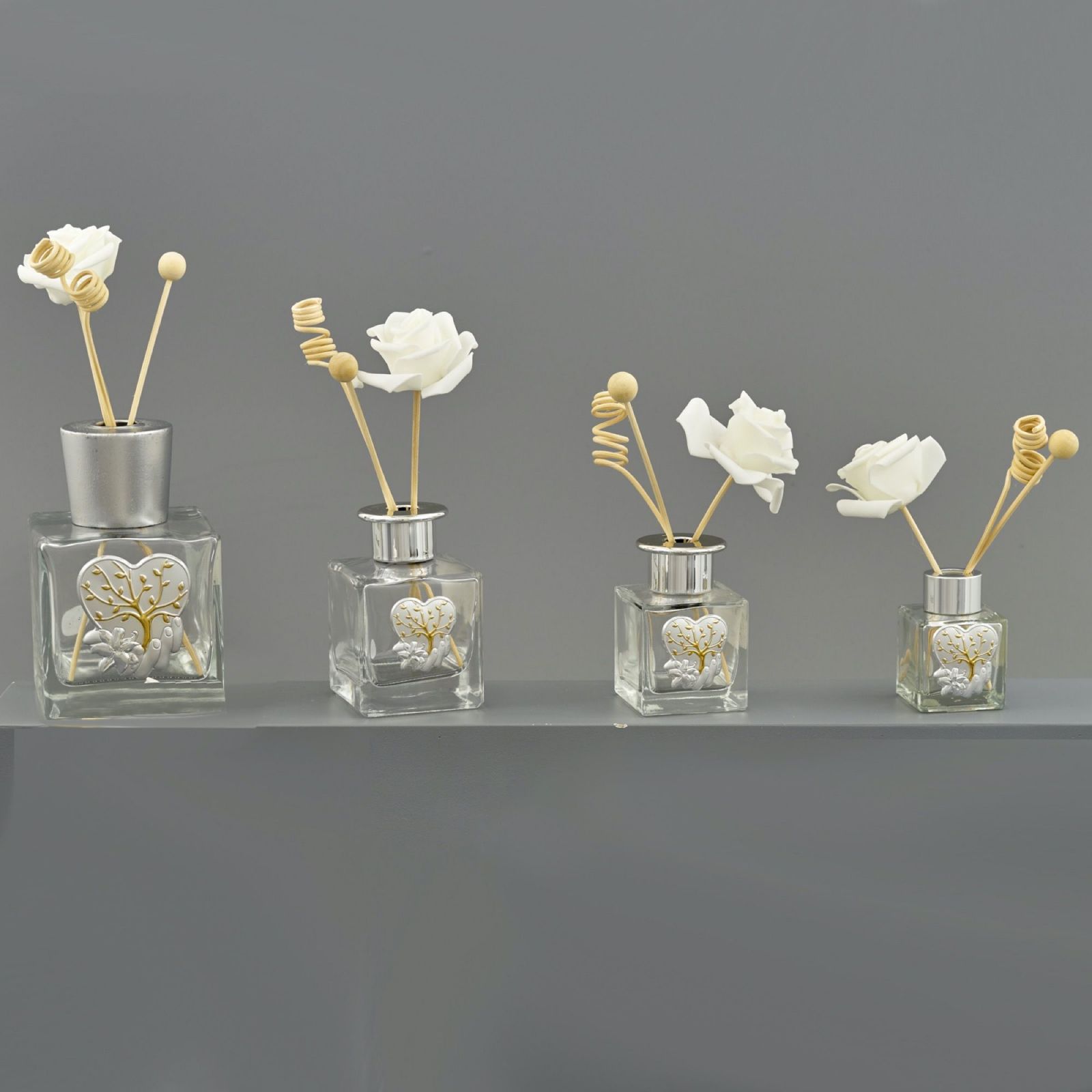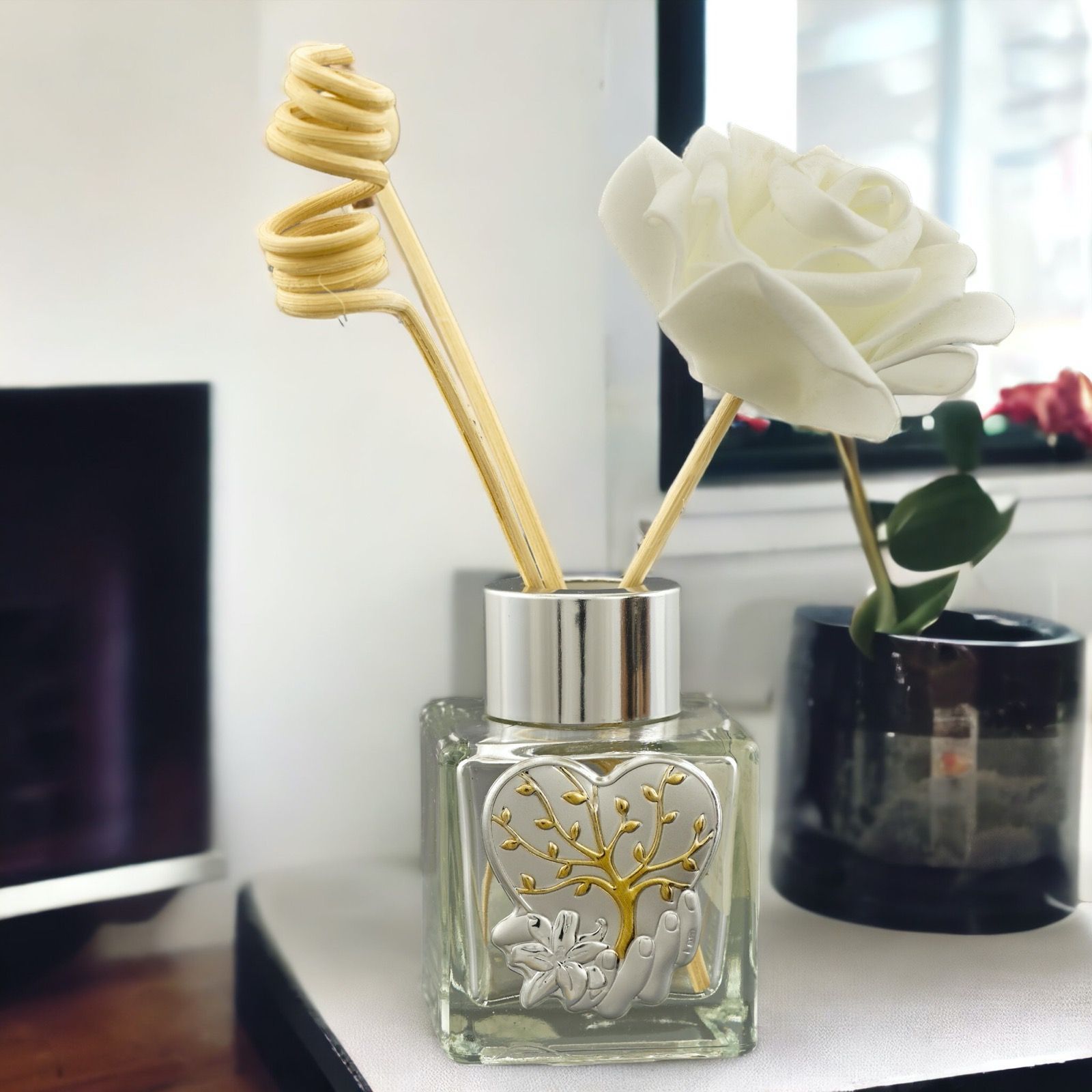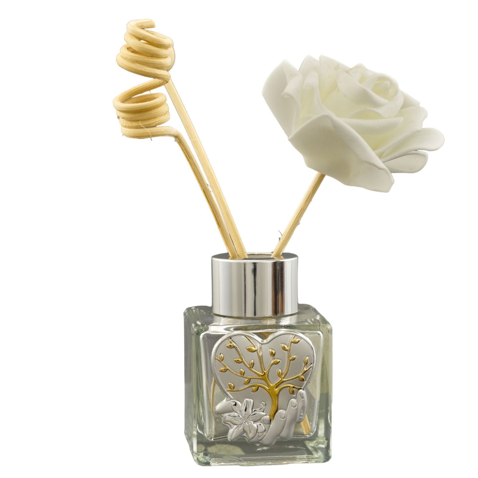 In caso di ricorrenze speciali come Battesimi, Prime Comunioni, Sante Cresime, Matrimoni o un anniversario, concedi ai tuoi invitati un’esperienza sensoriale unica regalando loro questo profumatore ambiente con tappo argento e piastrina con albero della vita color argento e foglie color oro.