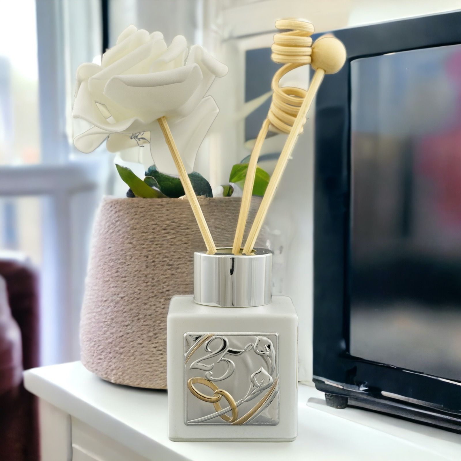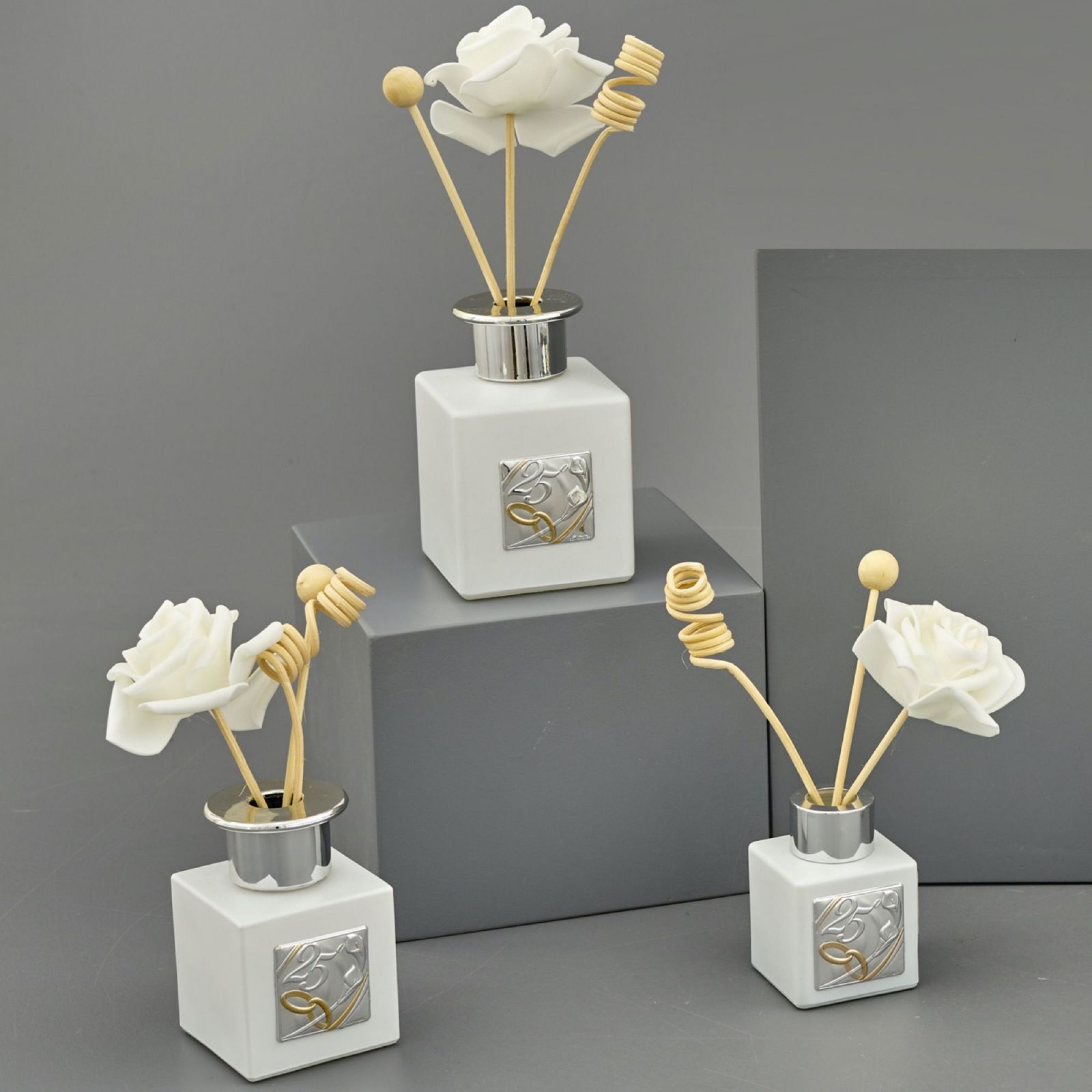 Celebra le tue nozze d'argento con una bomboniere unica ed elegante! Questo diffusore d'essenza dal design intramontabile ed esclusivo, è ideale per rendere speciali le tue partecipazioni. Originali, economiche e particolari: fatti ricordare grazie alla nostra soluzione!