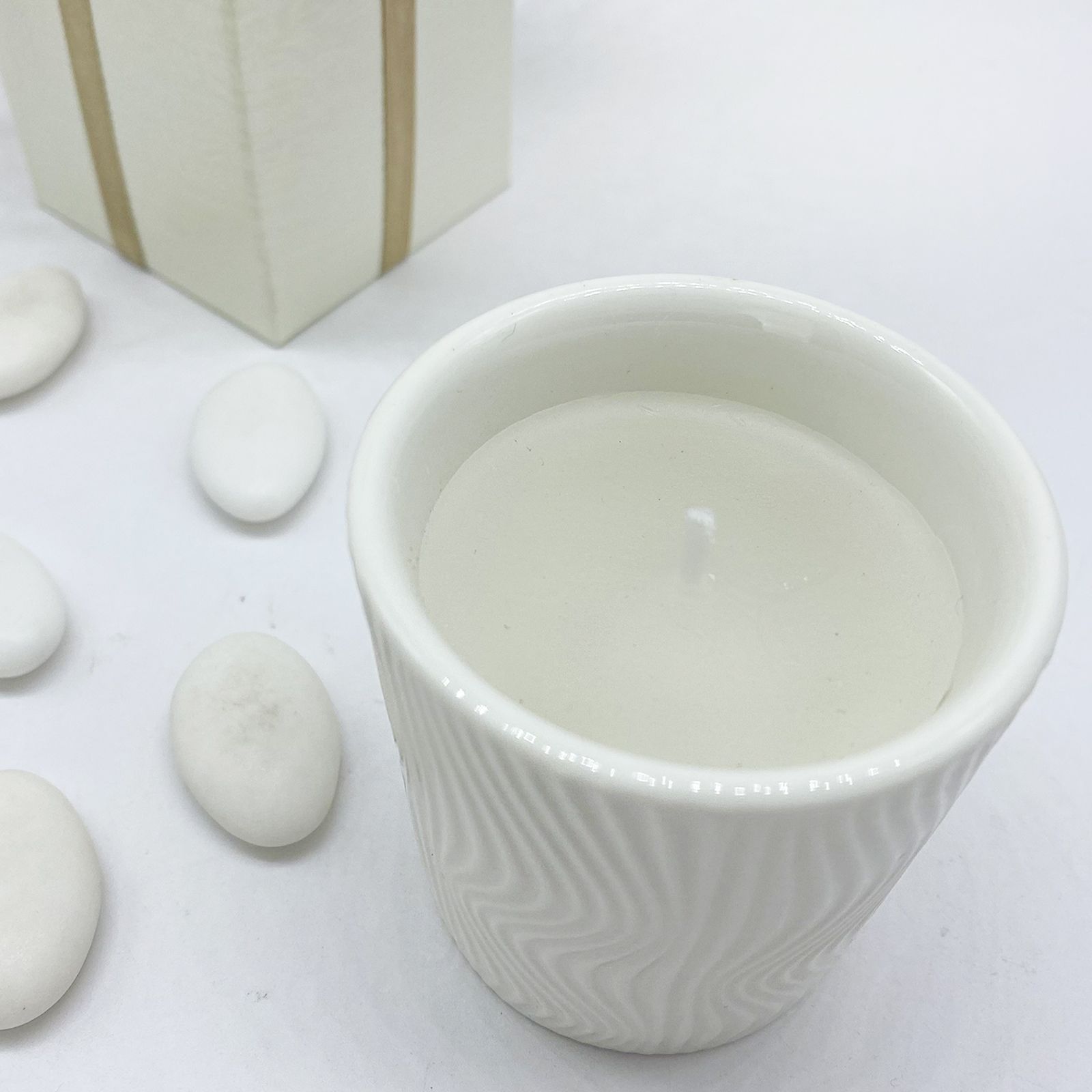 Con dimensioni di circa 6 x 6 cm e realizzata in pregiata ceramica bianca, questa candela è un segno tangibile di gratitudine per i tuoi ospiti. Il suo design elegante si adatta perfettamente a qualsiasi evento e decorazione.