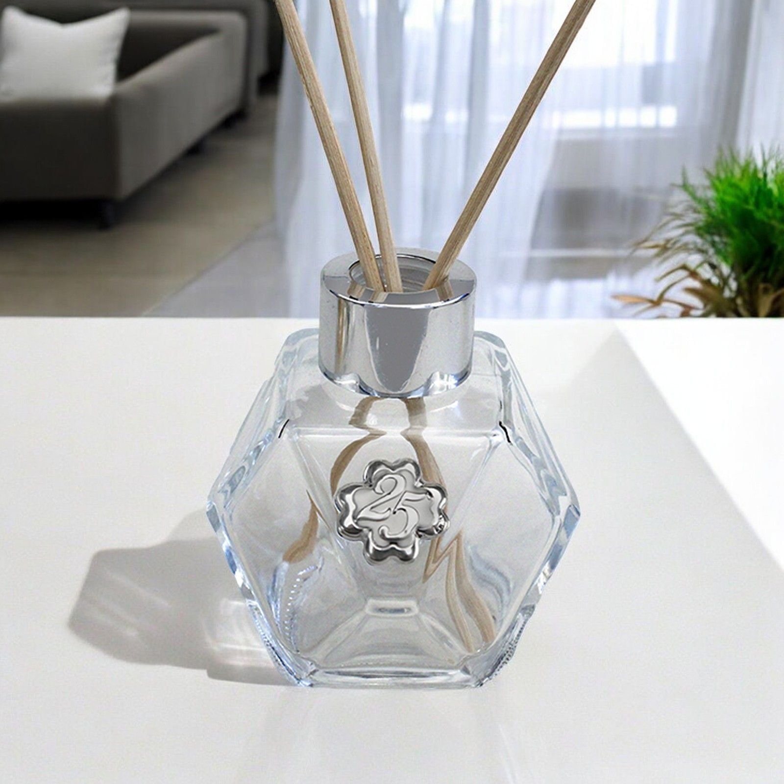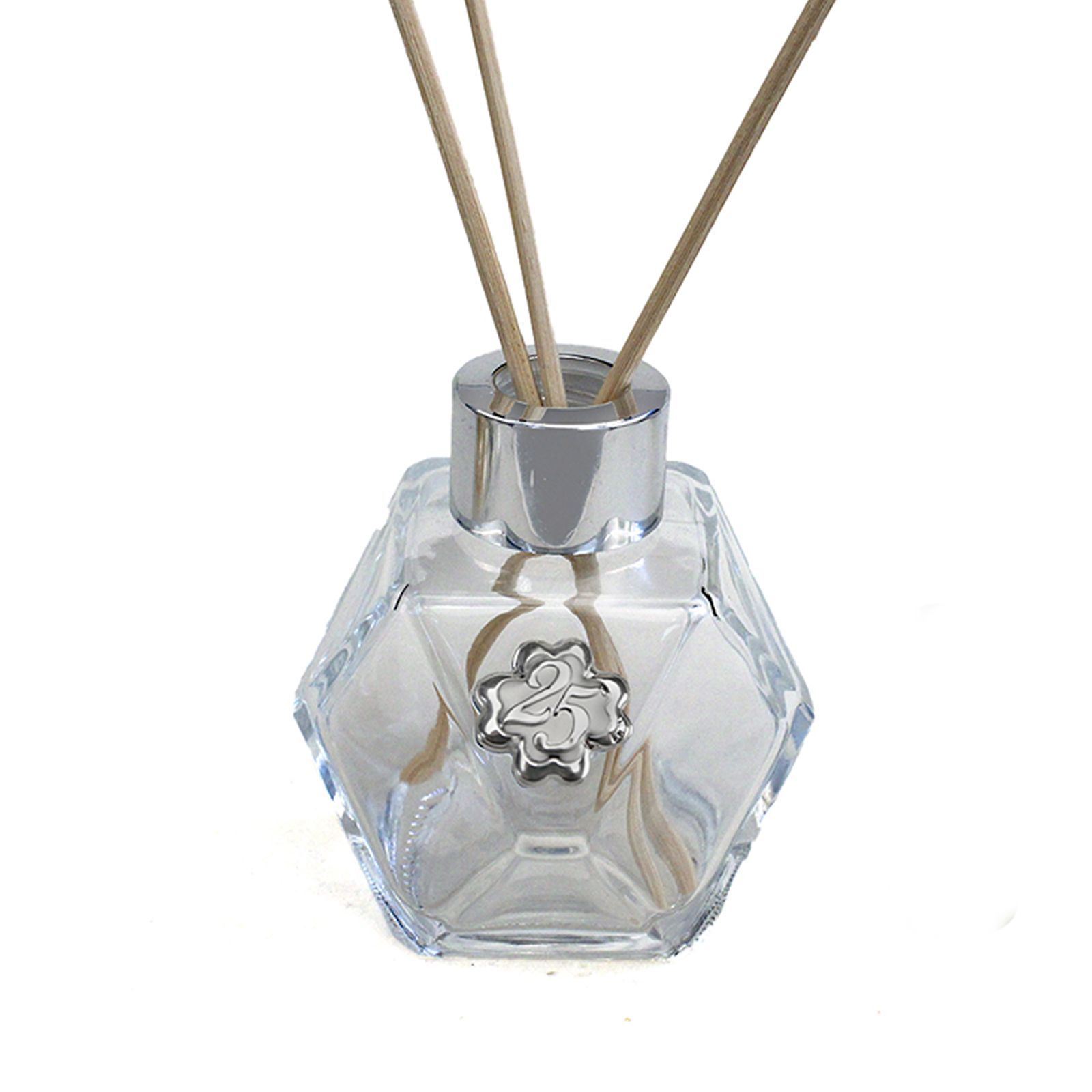 Rendi indimenticabili i tuoi eventi speciali con il nostro diffusore essenza esagonale, dotato di un'elegante applicazione color argento a forma di quadrifoglio con il numero 25! Questo accessorio è l’ideale per festeggiare anniversari e nozze argento, aggiungendo un tocco di classe a qualsiasi occasione.