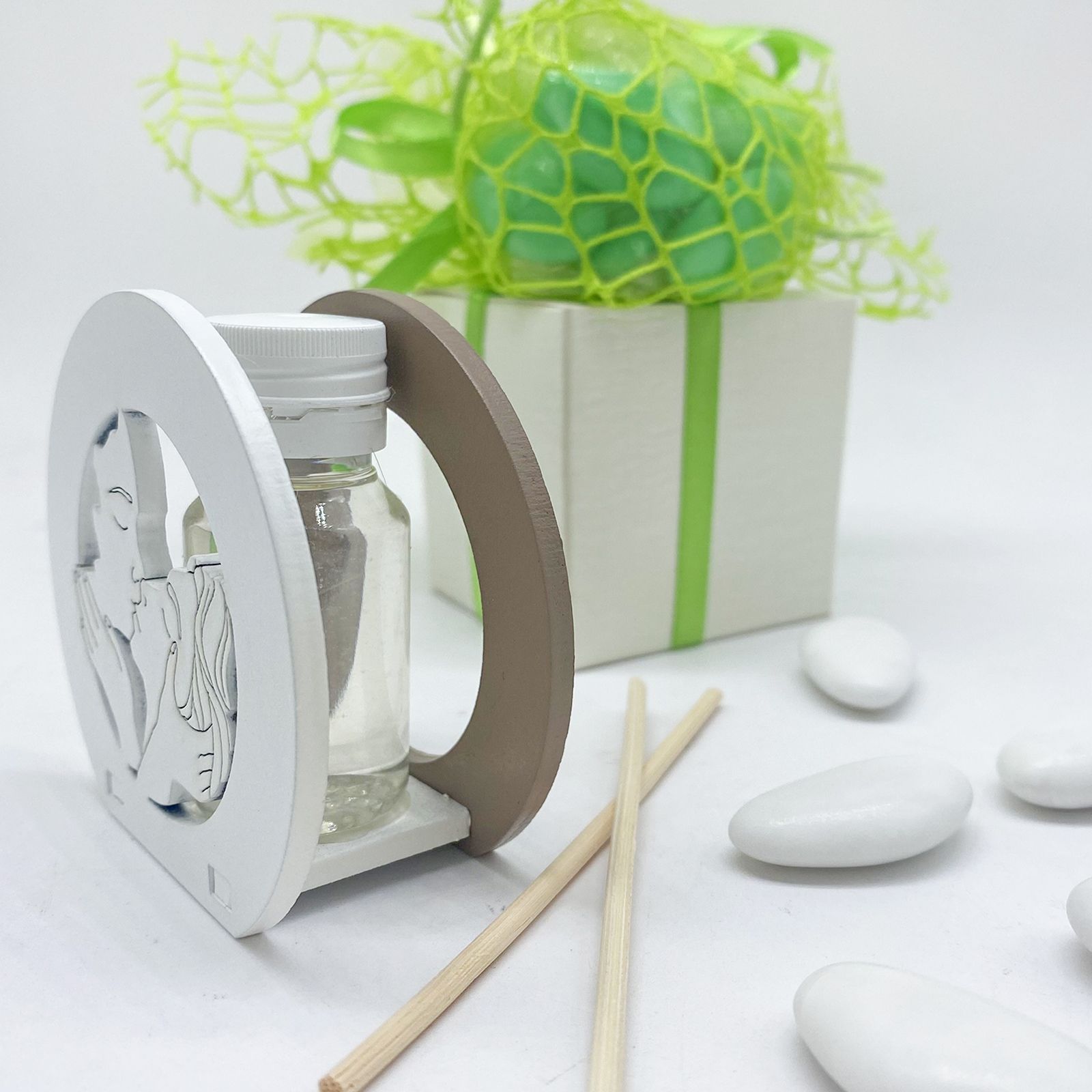 Scegliendo il mini profumatore come bomboniera, garantirai un regalo completo e economico che non scende a compromessi sulla qualità e sull'aspetto. Ogni dettaglio, dalla realizzazione artigianale alla presentazione elegante, è pensato per offrire un'esperienza unica e soddisfacente ai vostri invitati. Un'opzione perfetta per celebrare l'amore e l'affetto.