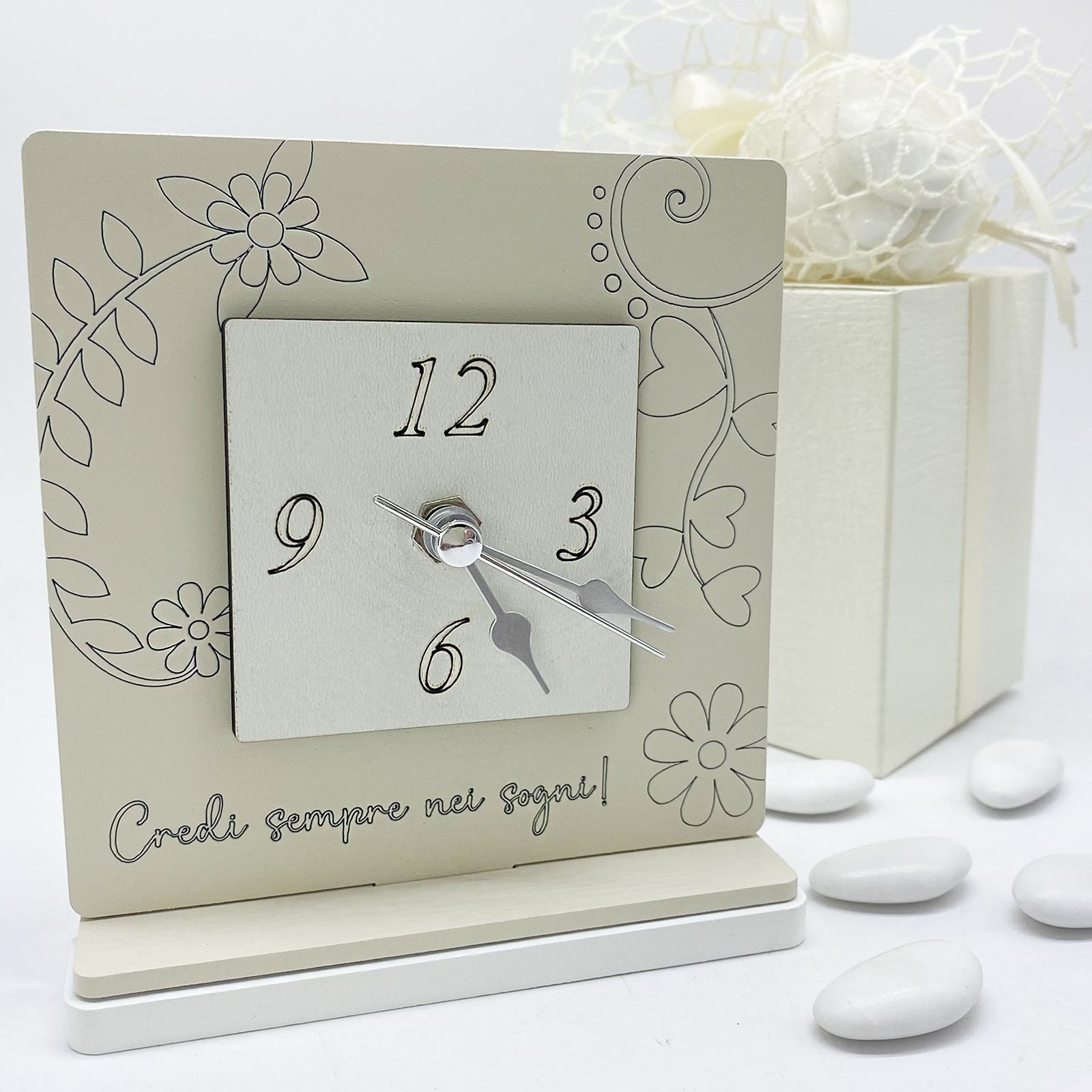 Aggiungi un tocco speciale a ogni celebrazione con questo orologio decorato con motivi floreali sul quadrante e la frase ispiratrice "Credere sempre nei sogni". Perfetto per comunione, cresima, matrimonio e anniversario, è un dono originale e particolare.