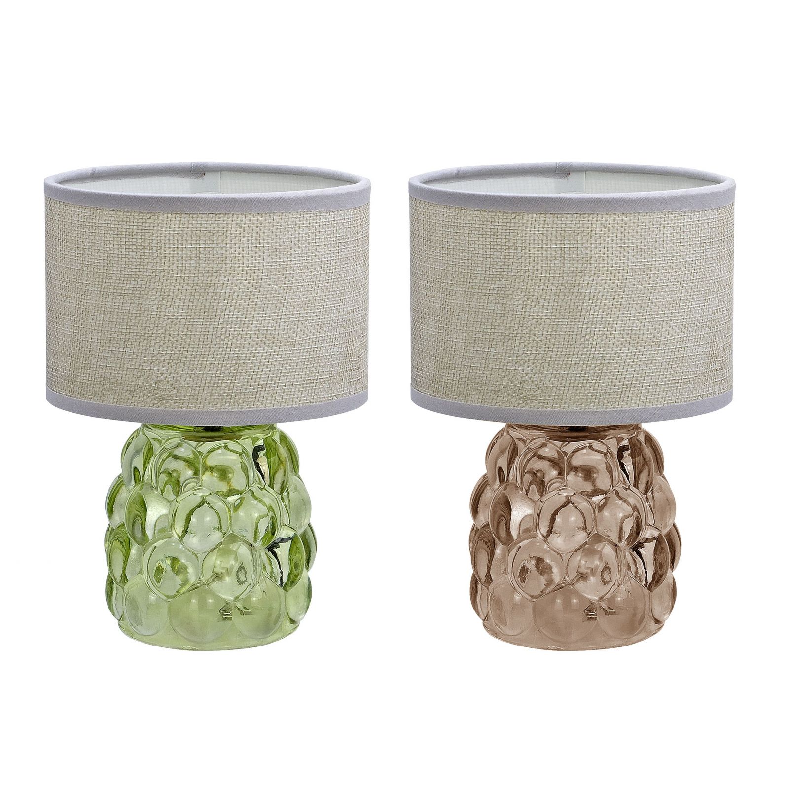 Questa elegante lampada da tavolo con paralume è l'idea regalo perfetta per matrimoni, comunioni, cresime e anniversari di nozze. Realizzata in vetro e tessuto, ha una dimensione di circa 12x17 cm ed è assortita in due varianti di colore, come da foto.