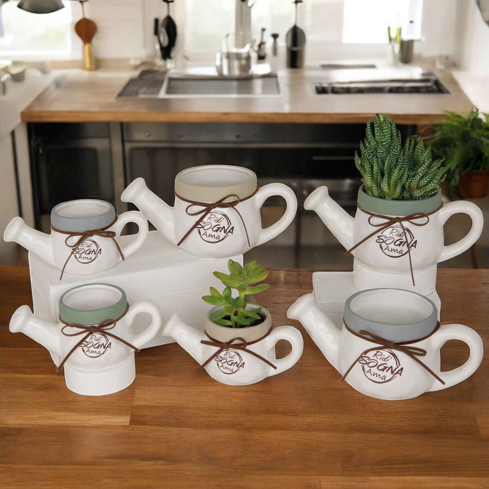 Scopri il nostro portapiante a forma di innafiatoio, disponibile in 3 modelli assortiti e decorato con la frase "Ridi, sogna, ama". Questa bomboniera originale è perfetta per rendere speciale il tuo evento, che sia un matrimonio, un anniversario, una comunione o una cresima.