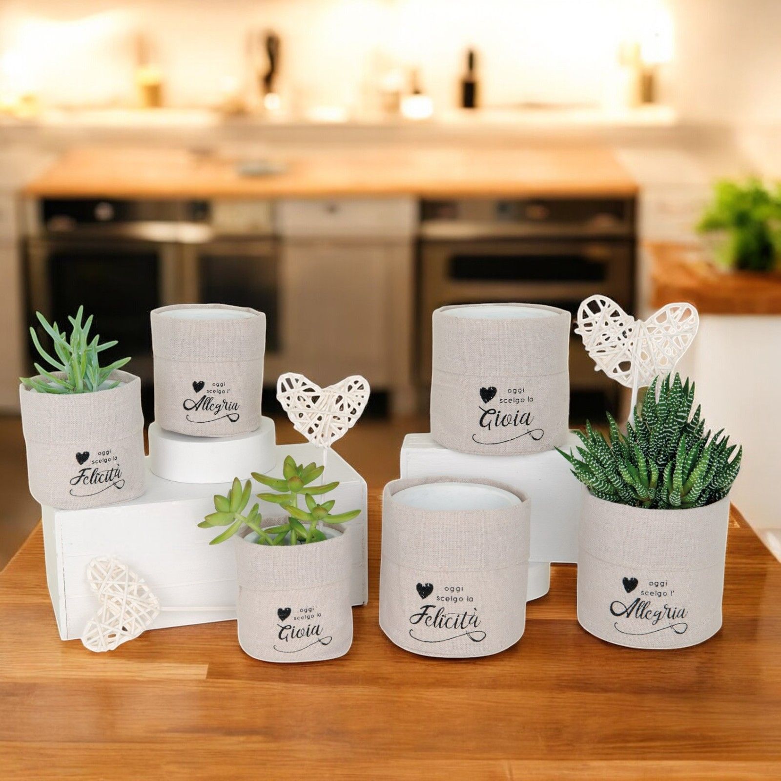 Rendi il tuo evento ancora più speciale con il nostro vaso portapiante cilindrico decorato con le frasi "Oggi scelgo l'allegria", "Oggi scelgo la gioia", "Oggi scelgo la felicità". Una bomboniera originale e particolare perfetta per eventi come matrimoni, anniversari, comunioni e cresime, che trasmette positività e buon umore.