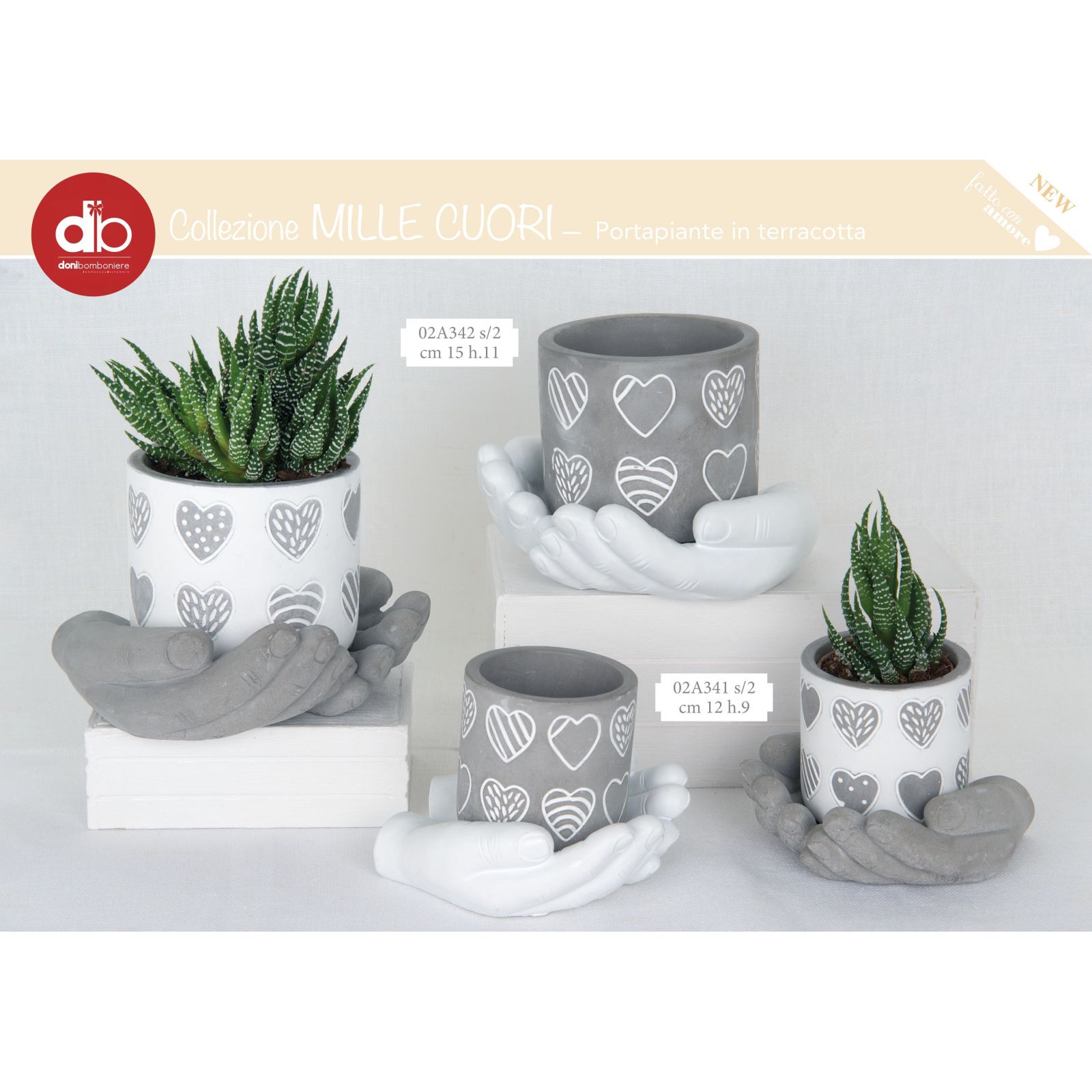 Scopri il nostro elegante vaso portapiante cilindrico con decorazione di cuoricini, sorretto da mani unite, una bomboniera originale e particolare che aggiungerà un tocco di raffinatezza al tuo evento. Perfetto per matrimoni, anniversari, cresime e comunioni, è un regalo che trasmette amore e unione.