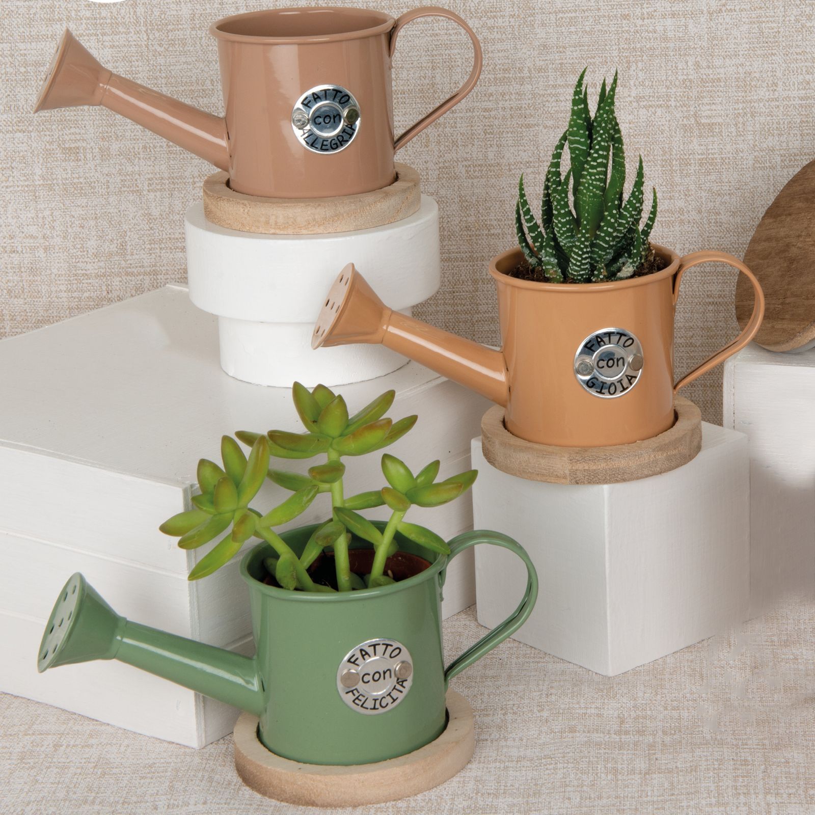 Per rendere speciale e unica la tua occasione, ti presentiamo il vaso a forma di innaffiatoio con targhetta assortita con frasi "Fatto con amore", "Fatto con felicità", "Fatto con gioia".
