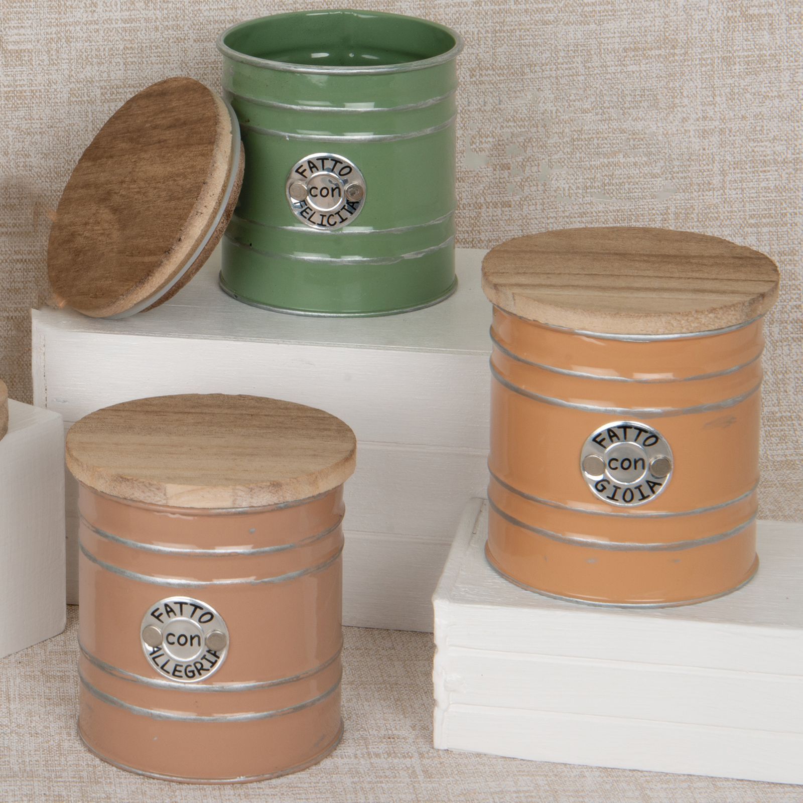 Questa bomboniera è il regalo perfetto per i tuoi invitati, simbolo di gratitudine e condivisione di momenti speciali. Realizzata in metallo, la scatola portatutto con coperchio in legno e targhetta assortita con le frasi "Fatto con amore", "Fatto con felicità", "Fatto con gioia", unisce eleganza e originalità.