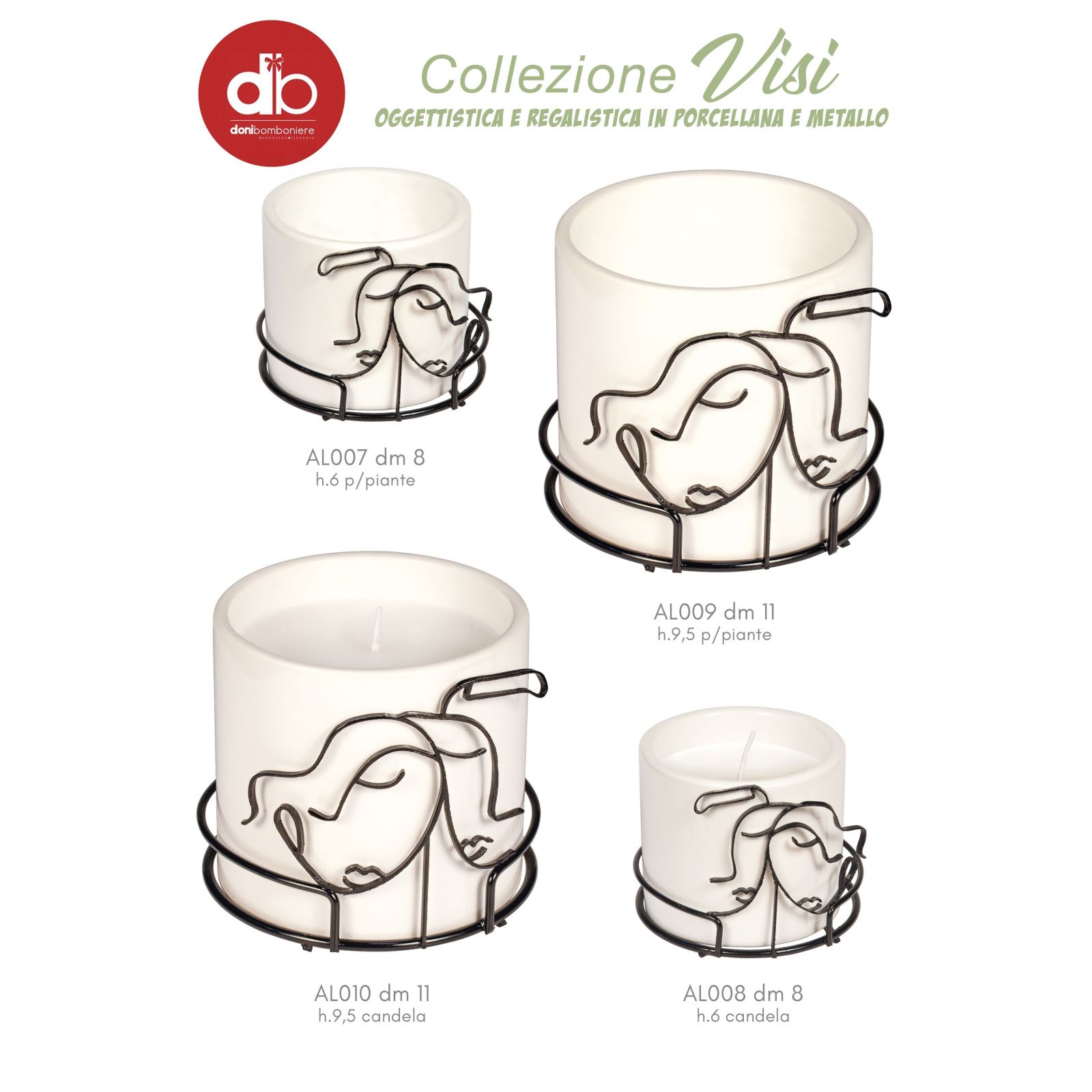 Realizzata in porcellana e metallo, questa bomboniera è pensata per essere un ricordo duraturo e significativo della vostra giornata speciale. Le sue linee delicate e romantiche racchiudono l'essenza di un amore che cresce e si fortifica nel tempo, come la luce della candela che arde costantemente.