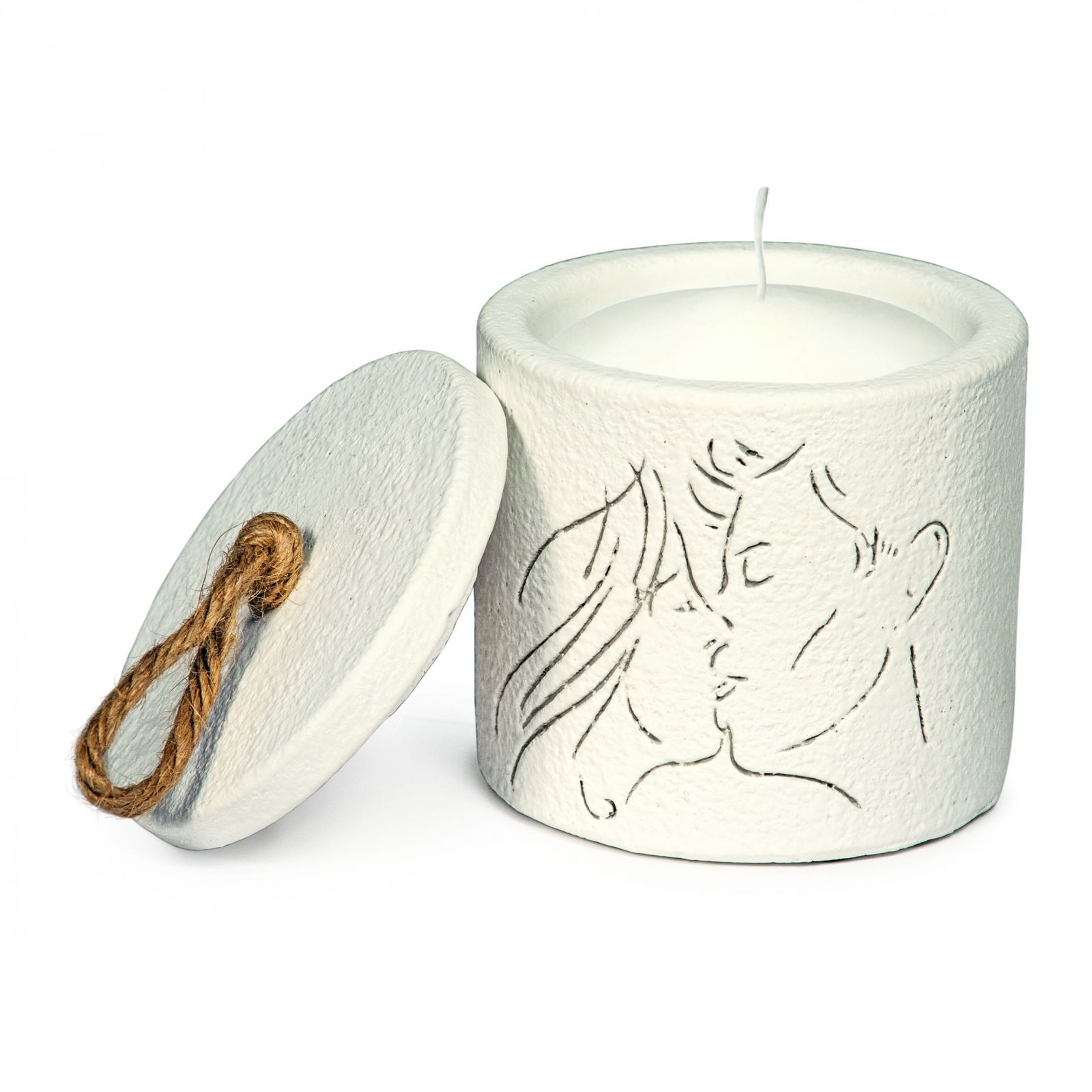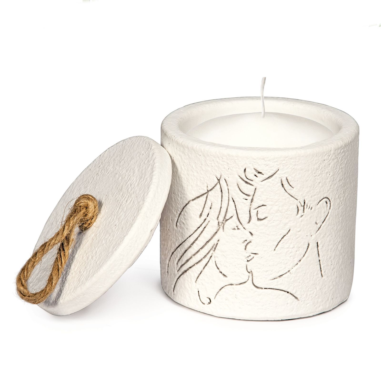 Il box candela con coperchio è realizzato in un elegante colore bianco e ha dimensioni di circa dm. 8 x h.8 cm. Il materiale di alta qualità garantisce una lunga durata nel tempo, rendendo questo prodotto un ricordo indelebile di un giorno speciale.