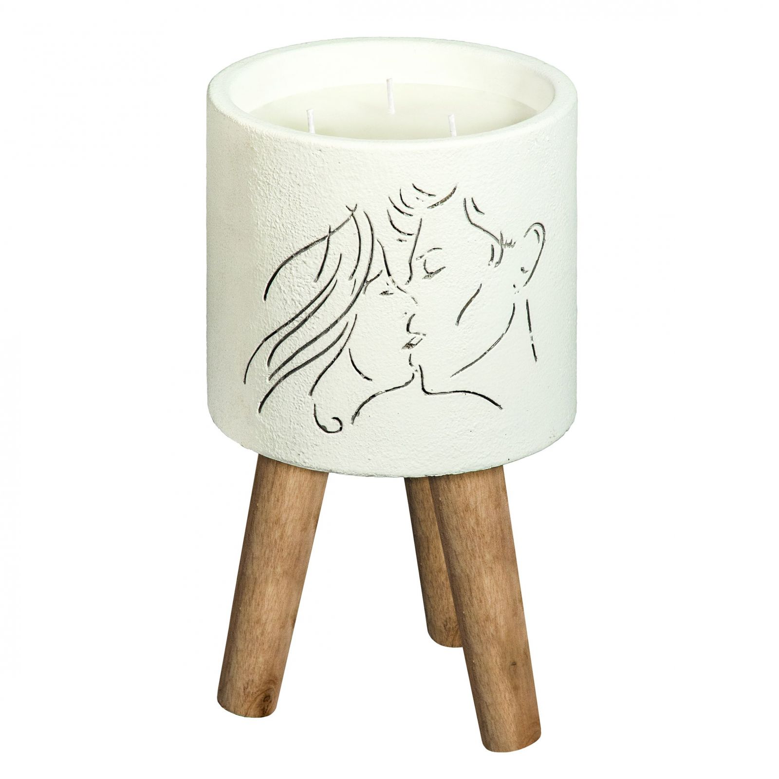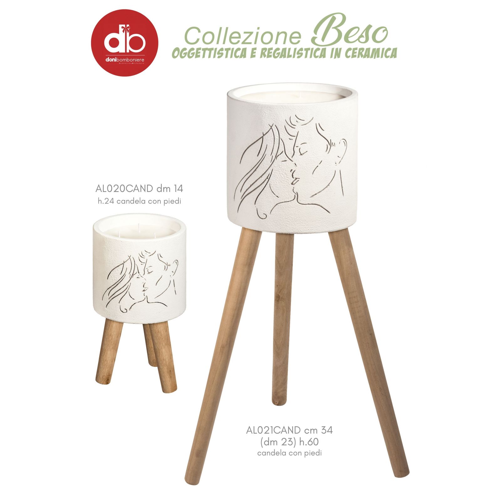La bomboniera Candela con raffigurazione innamorati che si baciano e piedini in legno è un'opzione elegante e romantica per celebrare momenti speciali come il matrimonio, l'anniversario o la promessa. Realizzata in ceramica e legno, questa bomboniera è disponibile in due dimensioni: Standard (dm. 14 x h. 24 cm circa) e Grande (cm 34 (dm23) h. 60 cm circa), perfetta per adattarsi alle esigenze e al budget del cliente.