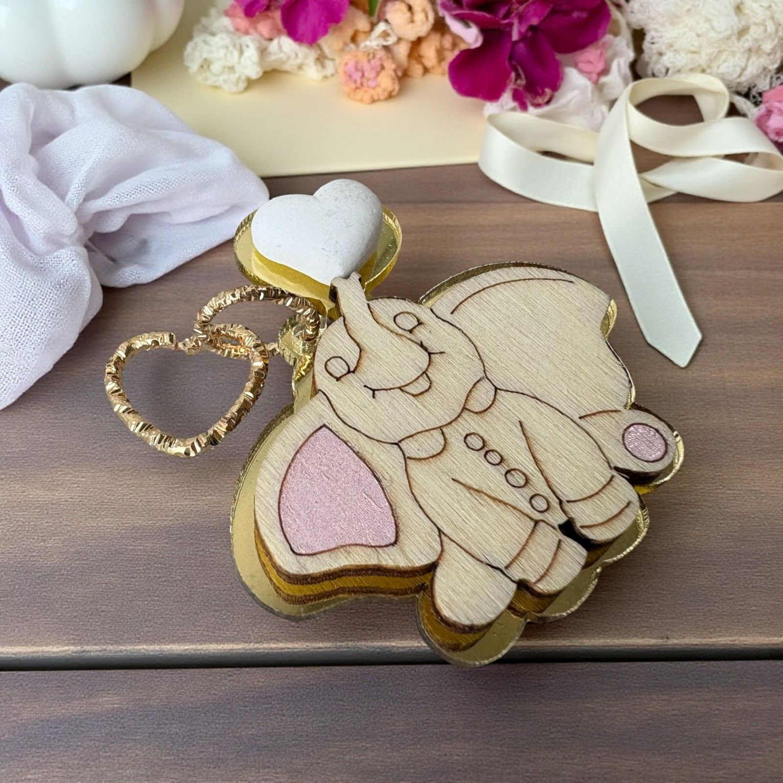 Scopri la dolcezza delle nostre bomboniere nascita con l'adorabile applicazione a forma di elefantino rosa, un simbolo di fortuna e gioia. Ogni particolare è progettato per rendere speciale ogni occasione, come il battesimo o il primo compleanno della tua femminuccia. Questa bomboniera non è solo un regalo, ma un tenero ricordo che accompagnerà i tuoi cari per sempre.