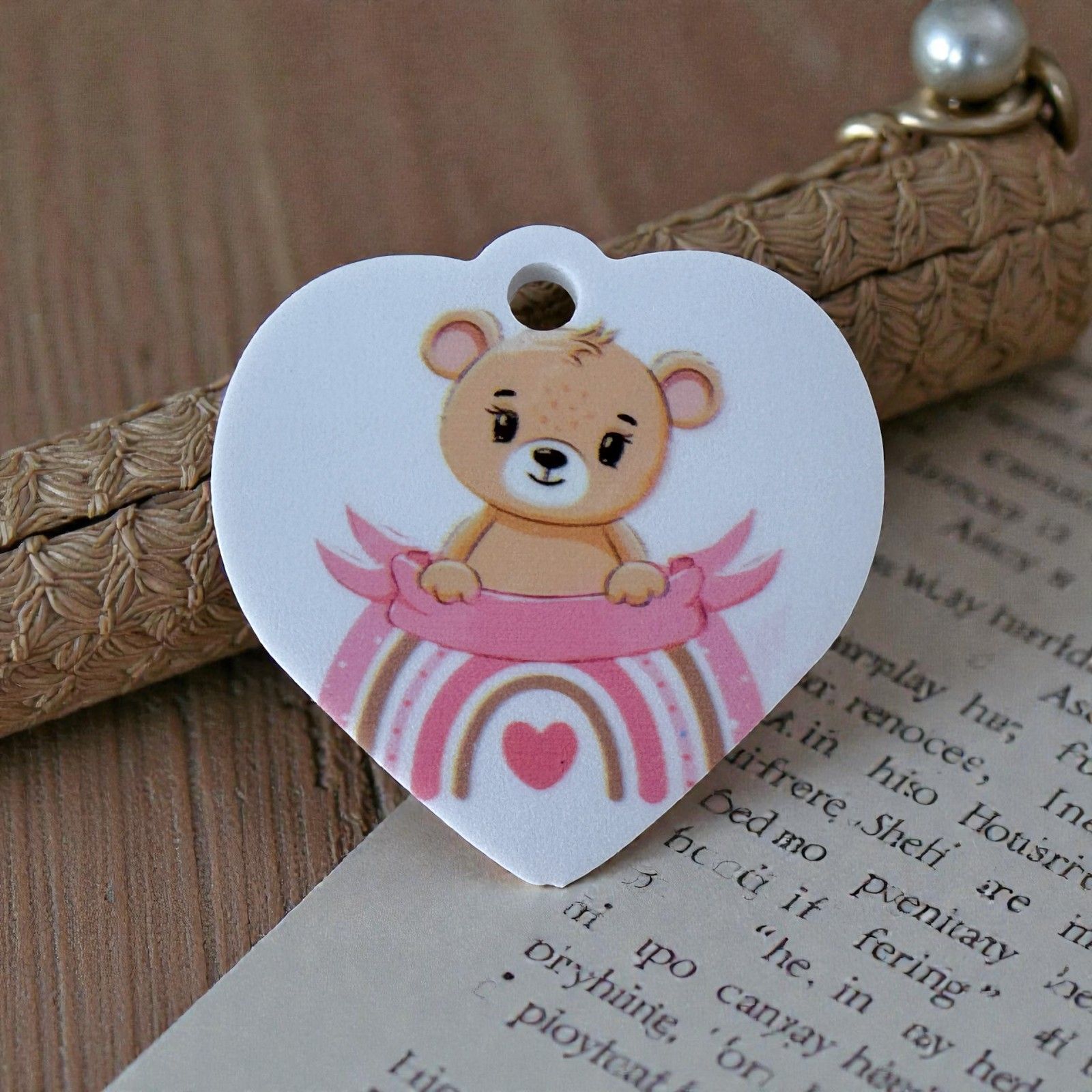 Realizzato in resina di alta qualità, il nostro ciondolo presenta un adorabile orsetto che abbraccia un arcobaleno nelle dolci tonalità del rosa. Questo elemento non è solo un segnaposto elegante, ma anche un delizioso ricordo da aggiungere alla tua confettata. Ogni dettaglio è pensato per evocare calore e affetto, rendendo ogni evento ancora più speciale.