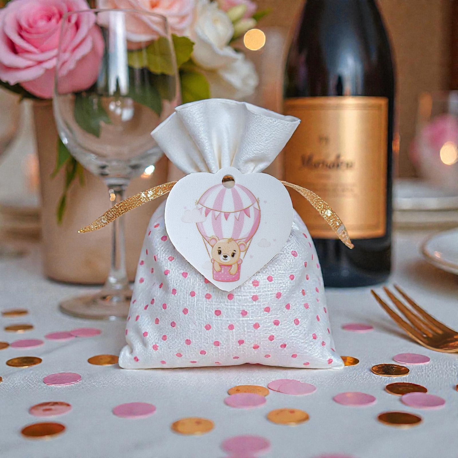 Realizzata in resina di alta qualità, la nostra bomboniera si presenta in una dolce combinazione di bianco e rosa, perfetta per esprimere il calore e la tenerezza di un nuovo inizio. Ogni pezzo è un segnaposto unico, ideale per arricchire la tua confettata e sorprendere gli ospiti con un ricordo tangibile di questa giornata così speciale.