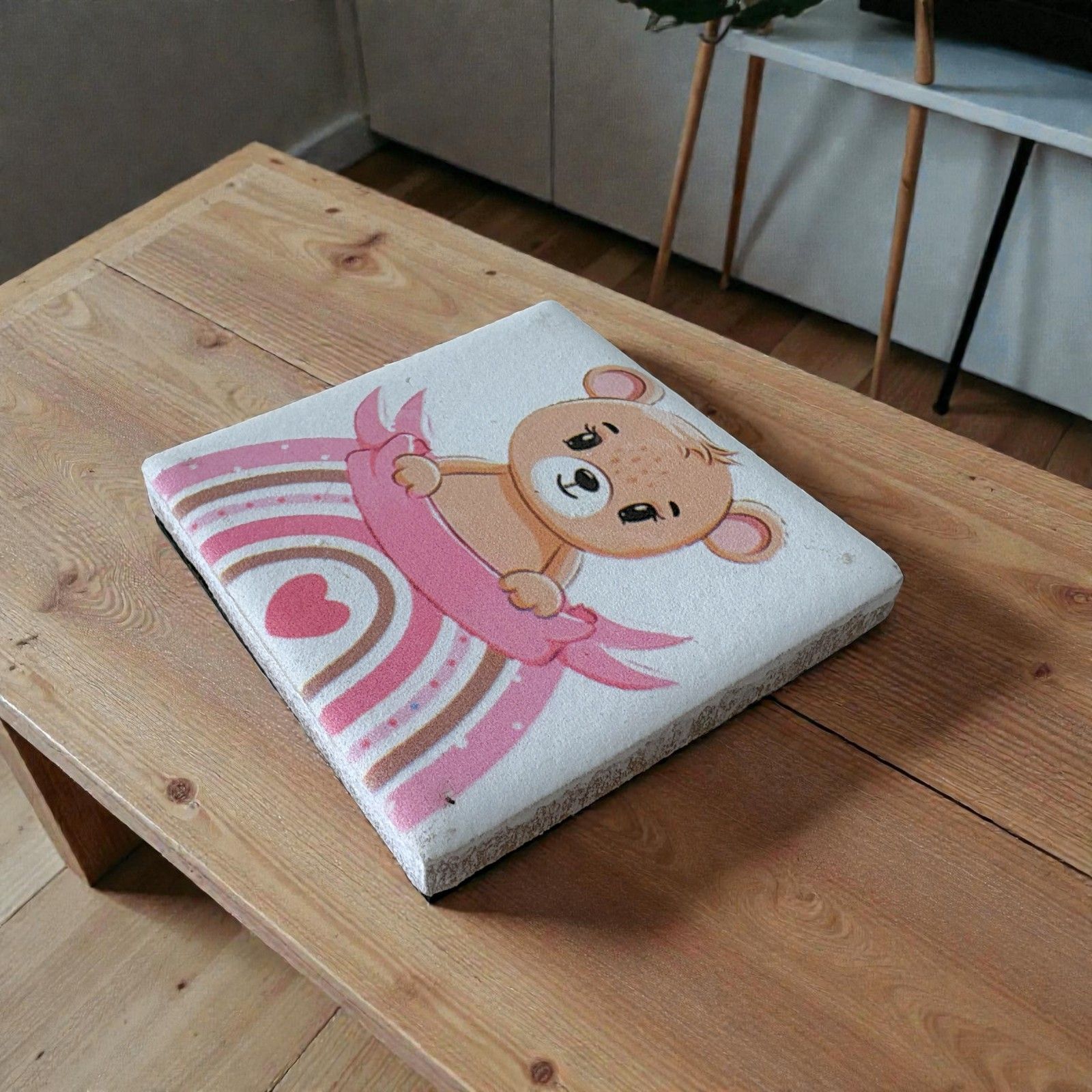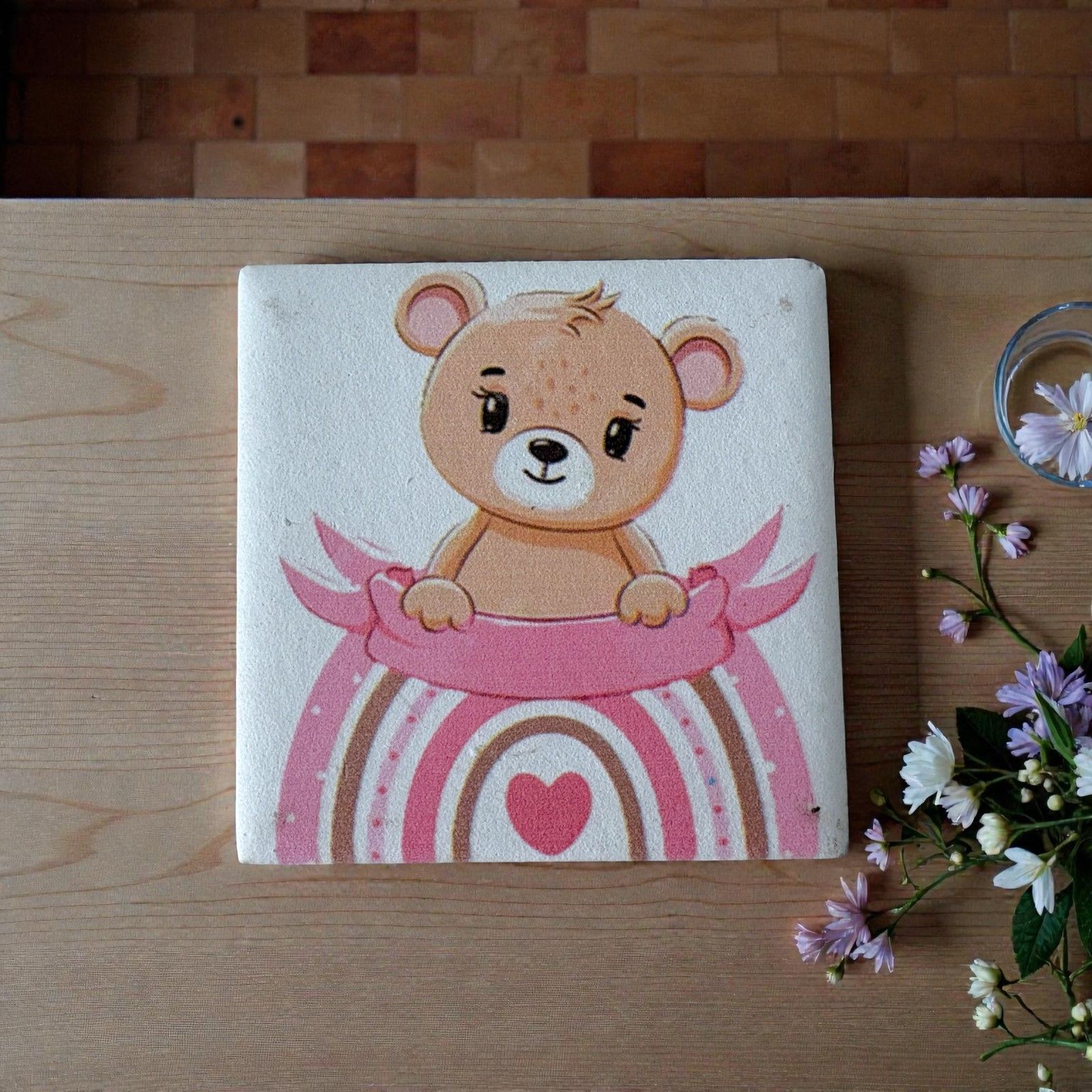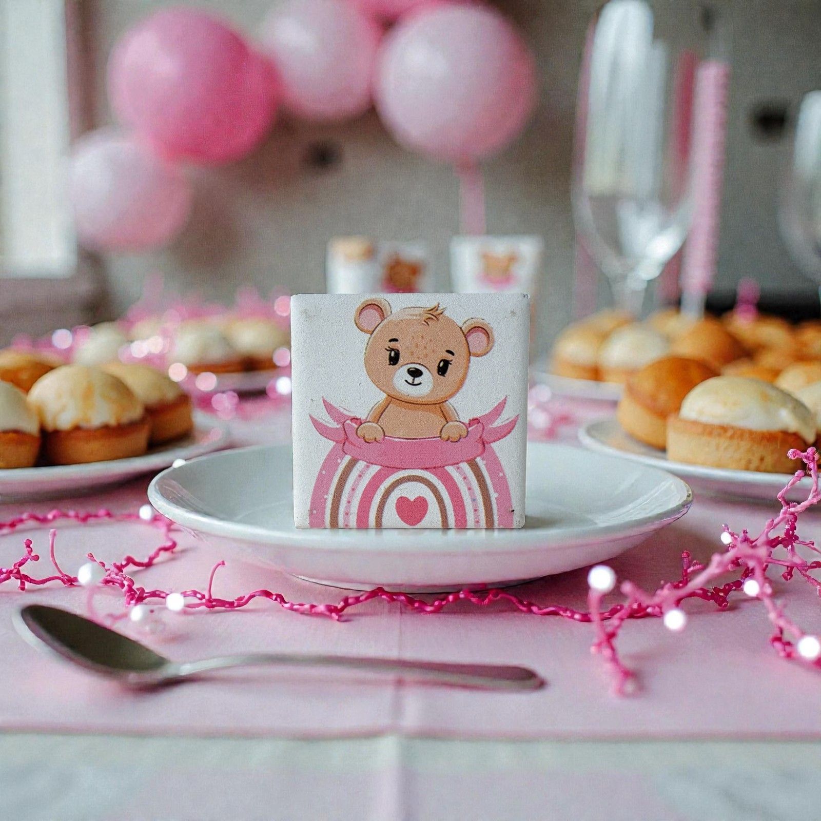 Il tenero orsetto che abbraccia l'arcobaleno rosa rappresenta la dolcezza della vita, portando un messaggio di speranza e felicità. Ogni volta che i tuoi cari lo osserveranno, verranno avvolti da un'atmosfera di tenerezza e affetto, rendendo questo oggetto il perfetto segnaposto per la tua confettata o per qualsiasi celebrazione dedicata alla tua piccola.