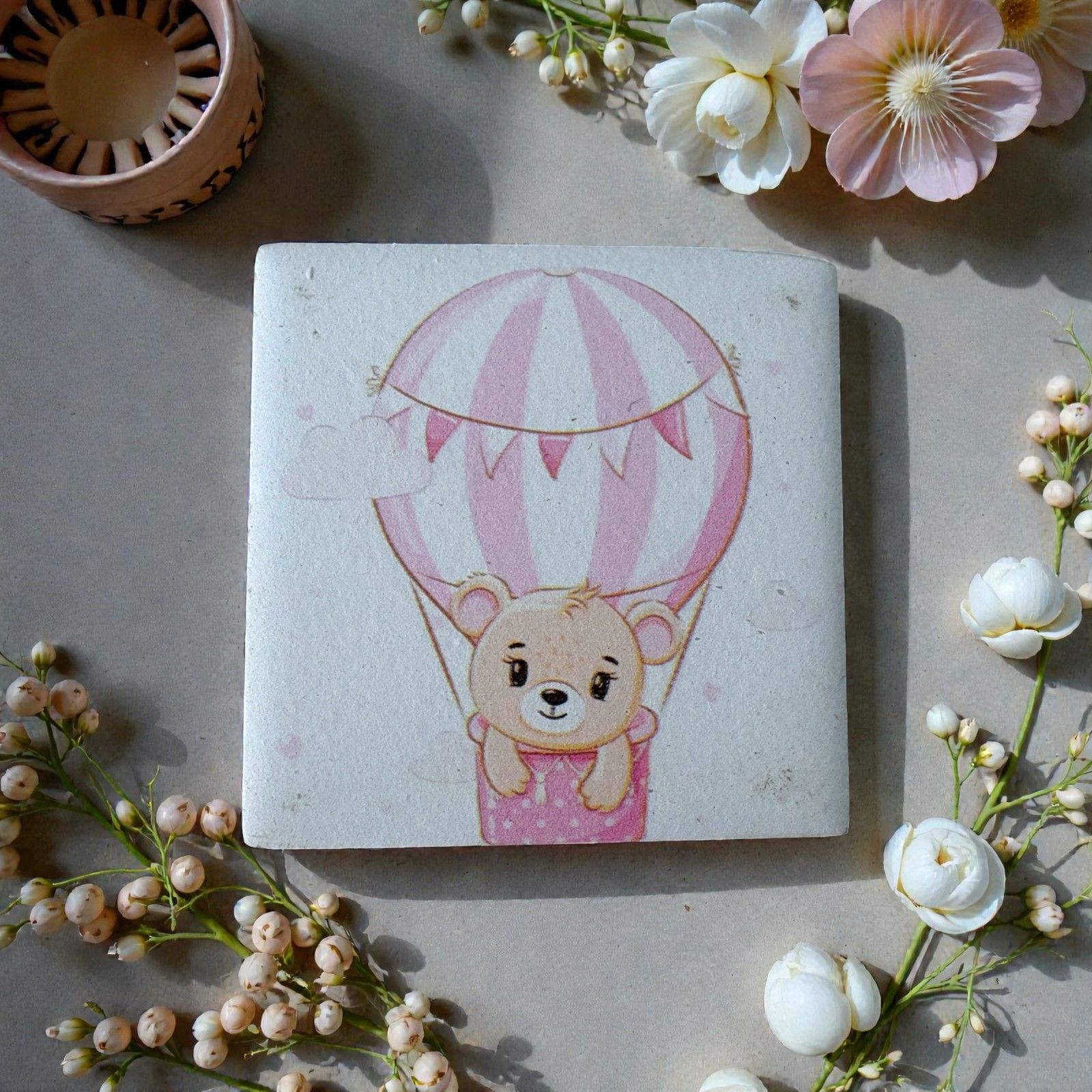 Realizzata in resina di alta qualità, questa calamita quadrata in tonalità di bianco e rosa è perfetta come segnaposto o per arricchire la vostra confettata. Il tenero orsetto sulla mongolfiera non è solo un elemento decorativo, ma rappresenta l’inizio di un viaggio magico e avventuroso, da vivere insieme alla vostra piccola. Questo regalo porterà un sorriso sui volti degli invitati, rendendo ogni momento indimenticabile.