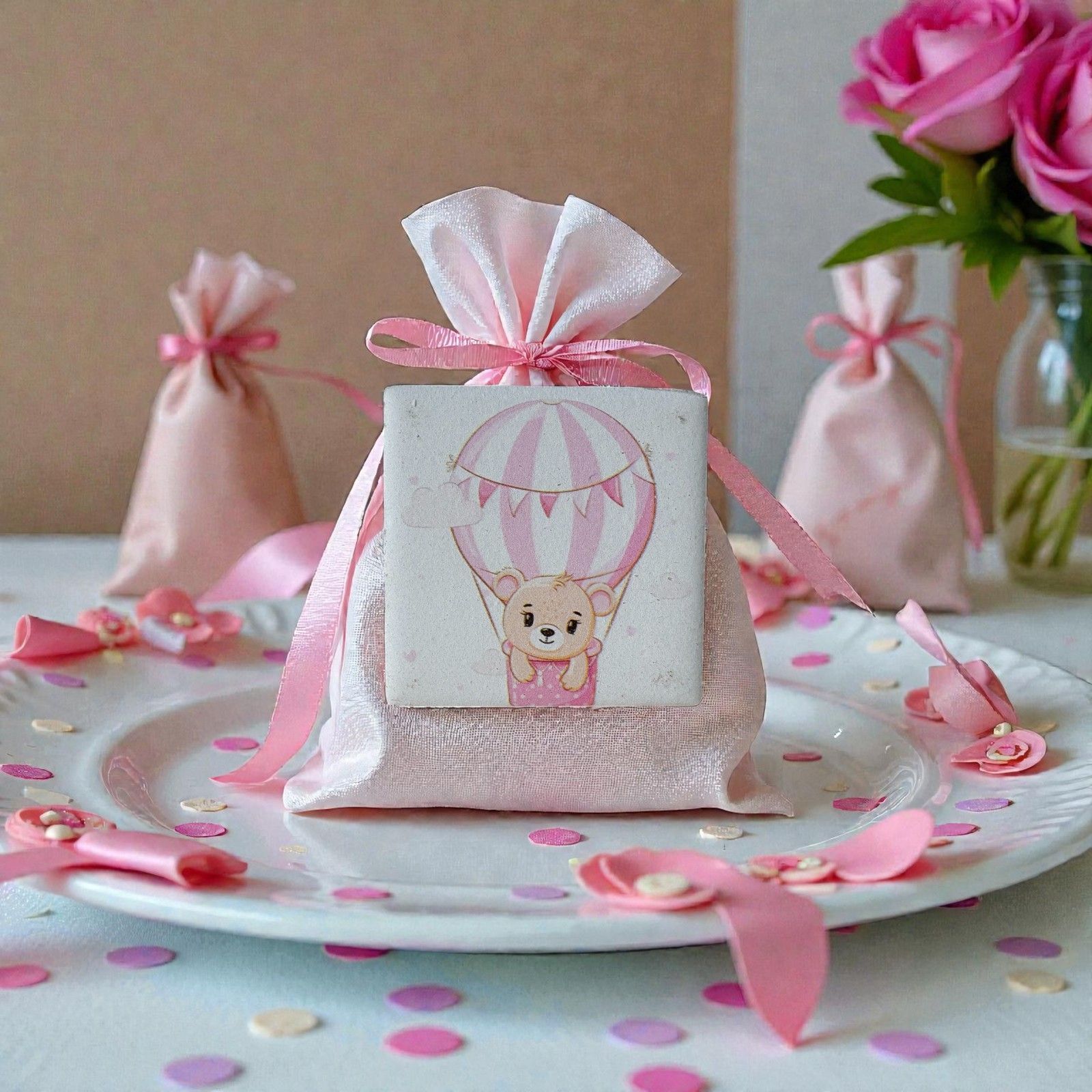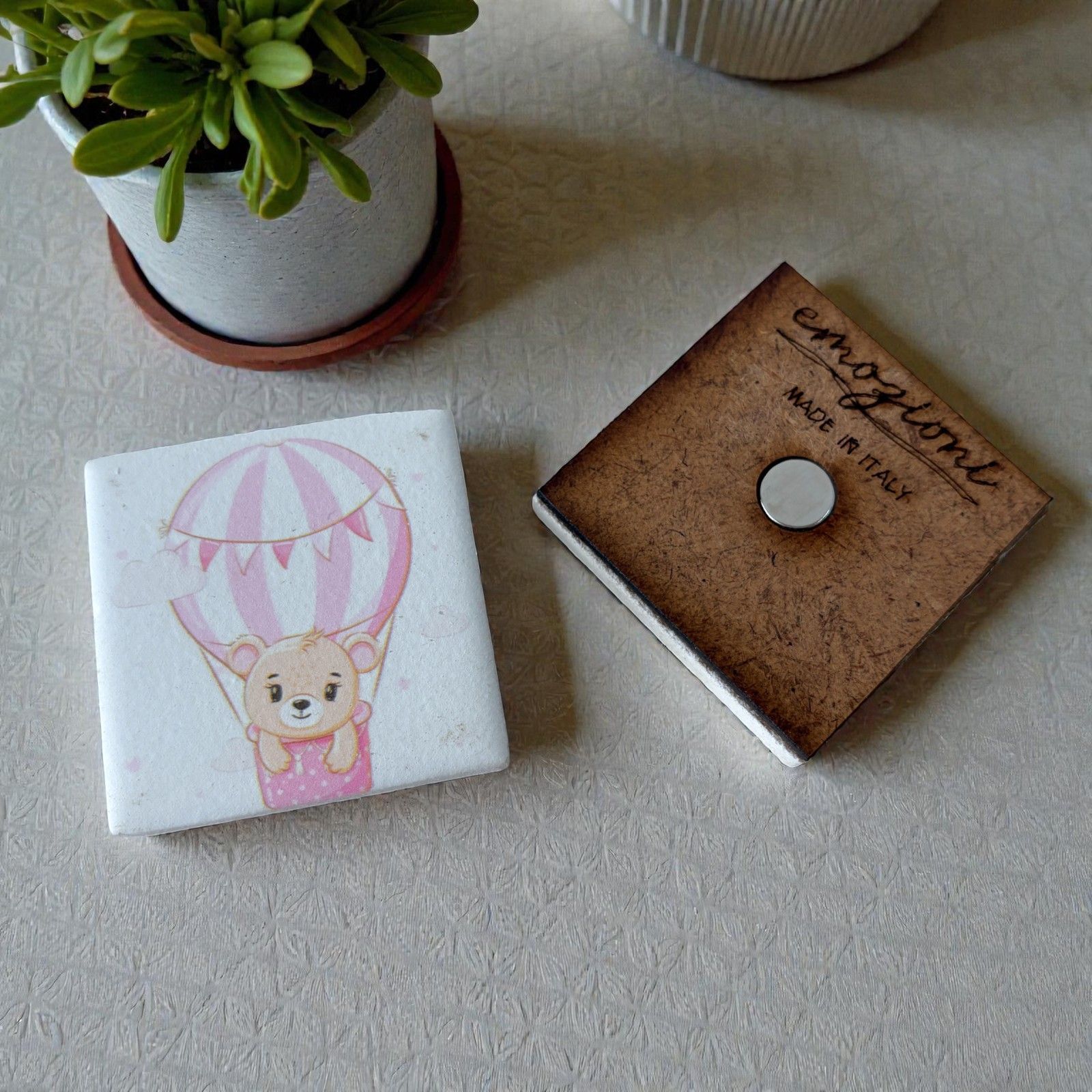 Scopri la magia delle bomboniere nascita e bomboniere battesimo con la nostra deliziosa calamita con mongolfiera rosa e orsetto. Questo piccolo capolavoro è più di un semplice regalo: è un simbolo di amore e gioia, un modo per celebrare l'arrivo di una nuova vita. Ogni volta che i vostri ospiti lo guarderanno, saranno trasportati in un mondo di dolcezza e serenità, ricordando il giorno speciale in cui hanno festeggiato la vostra dolce bambina.