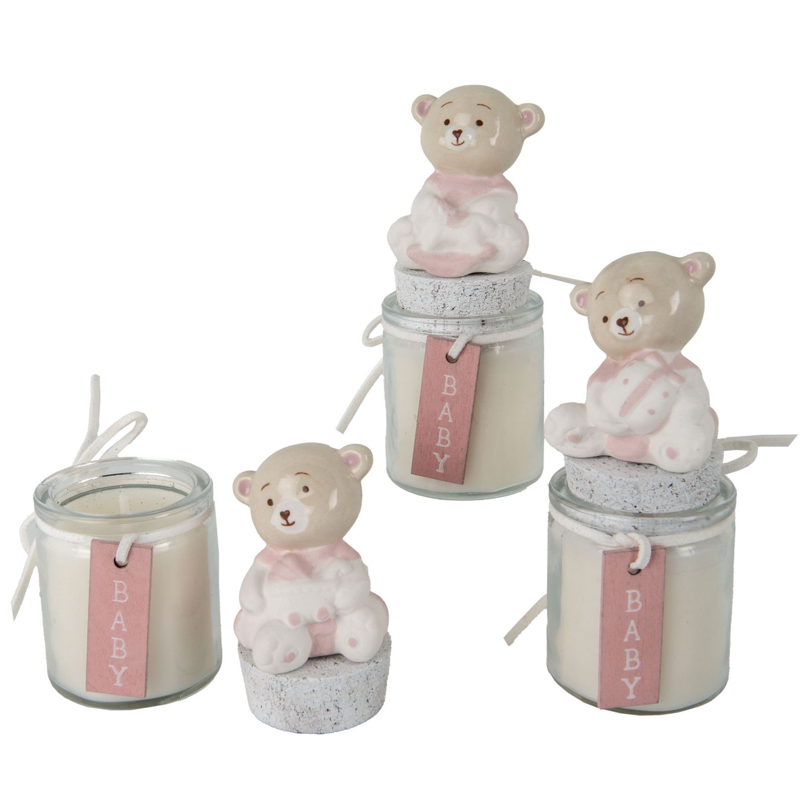 Rendi unico il battesimo della tua bambina con una bomboniera che esprime dolcezza ed eleganza: il barattolo con candela e orsetto. Questo delizioso barattolo, assortito in tre modelli – con carrozzina, pacco regalo o cavalluccio – è il dono perfetto per celebrare un momento così speciale.