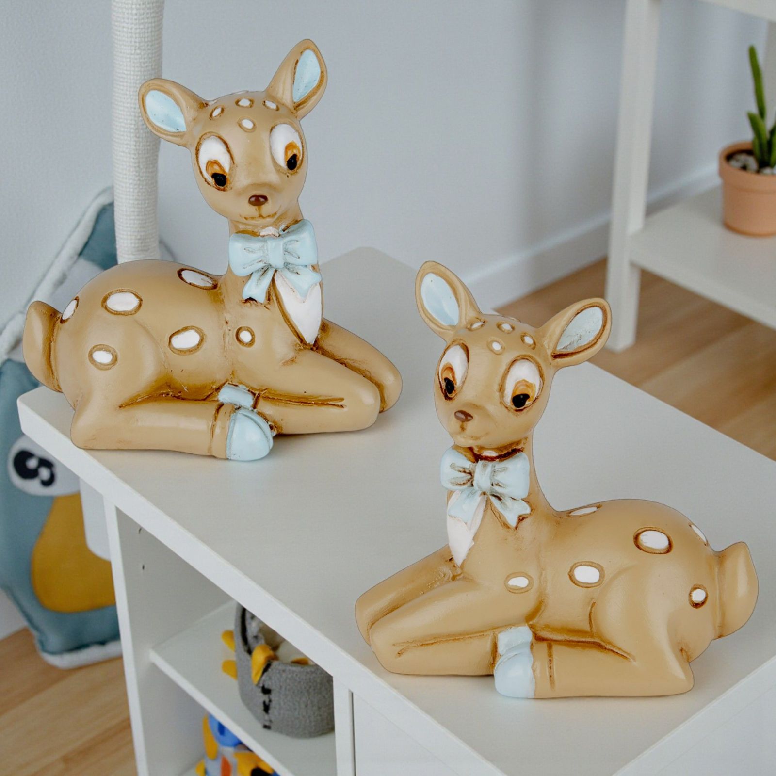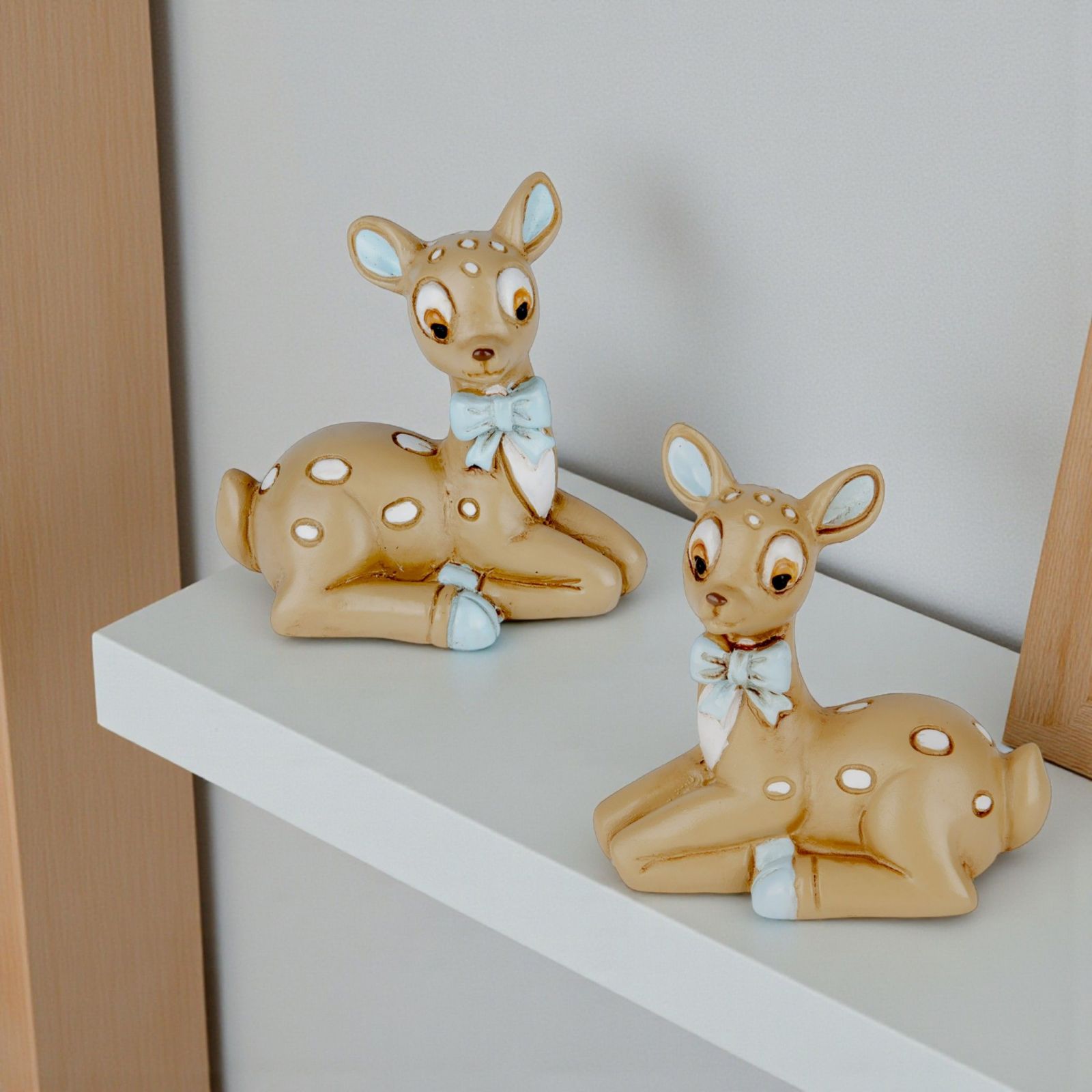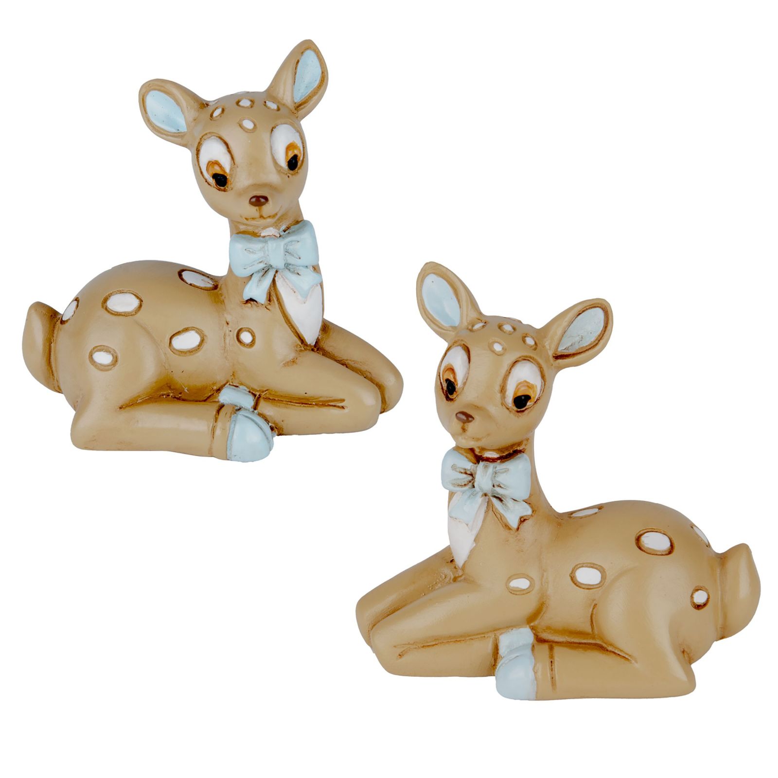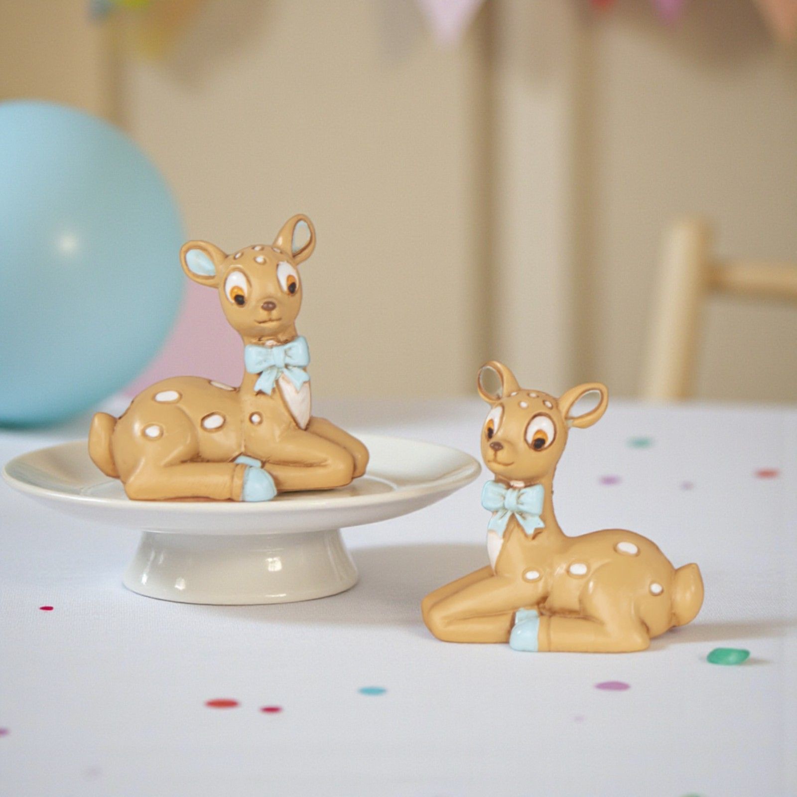 Realizzata in resina di alta qualità, la nostra bomboniera maschietto non è solo un semplice oggetto, ma un vero e proprio portafortuna. Ogni cervo è un piccolo capolavoro, ricco di significato e bello da vedere, ideale come pensierini nascita per i tuoi ospiti. Con il suo colore marrone e i dettagli azzurri, questa statuina si integra perfettamente in ogni decorazione.