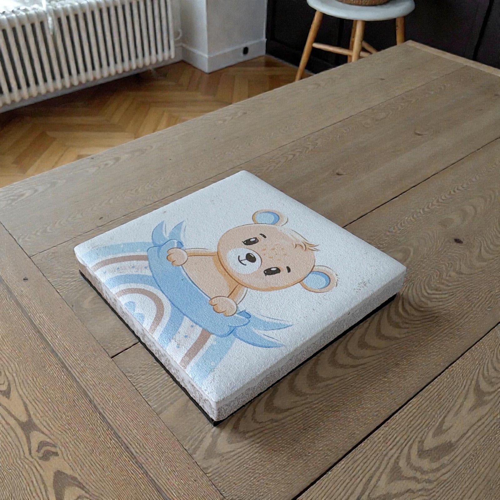 Realizzato in resina, questo magnete di alta qualità è ornato con dolci tonalità di bianco e celeste, che evocano tenerezza e serenità. Un'aggiunta perfetta per la tua confettata, questo prodotto non è solo una bomboniera, ma un ricordo tangibile di un evento unico e indimenticabile. Ogni orsetto e ogni arcobaleno raccontano una storia di gioia e speranza.