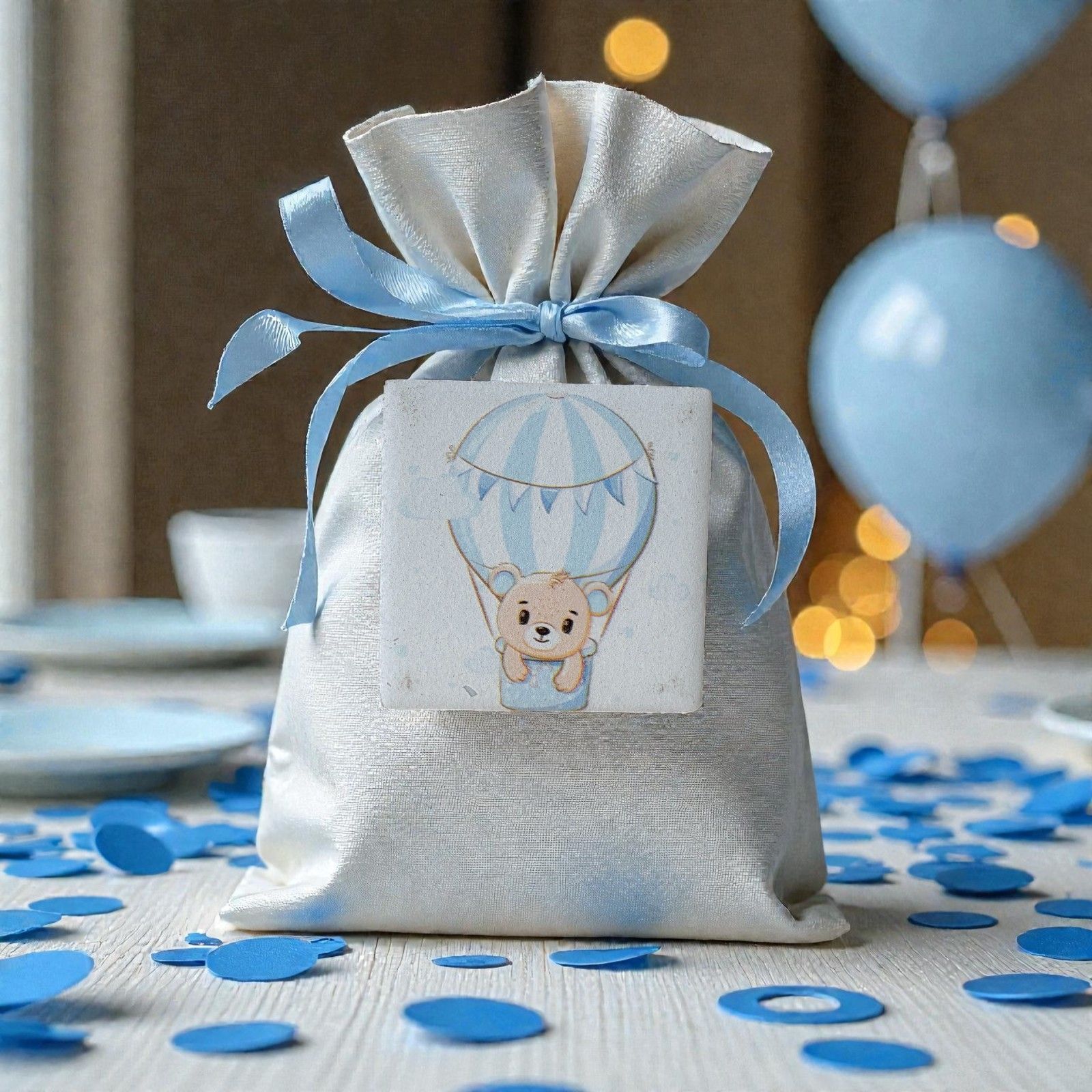 Scopri la dolcezza delle nostre bomboniere nascita e battesimo con il grazioso magnete orsetto e mongolfiera. Questo delizioso accessorio è pensato per rendere ogni celebrazione unica e indimenticabile. L'orsetto sulla mongolfiera rappresenta un viaggio di amore e sogni, ideale per accogliere il tuo piccolo tesoro in questo mondo. Ogni magnete è un piccolo segno di affetto che lascerà un sorriso sui volti degli invitati.