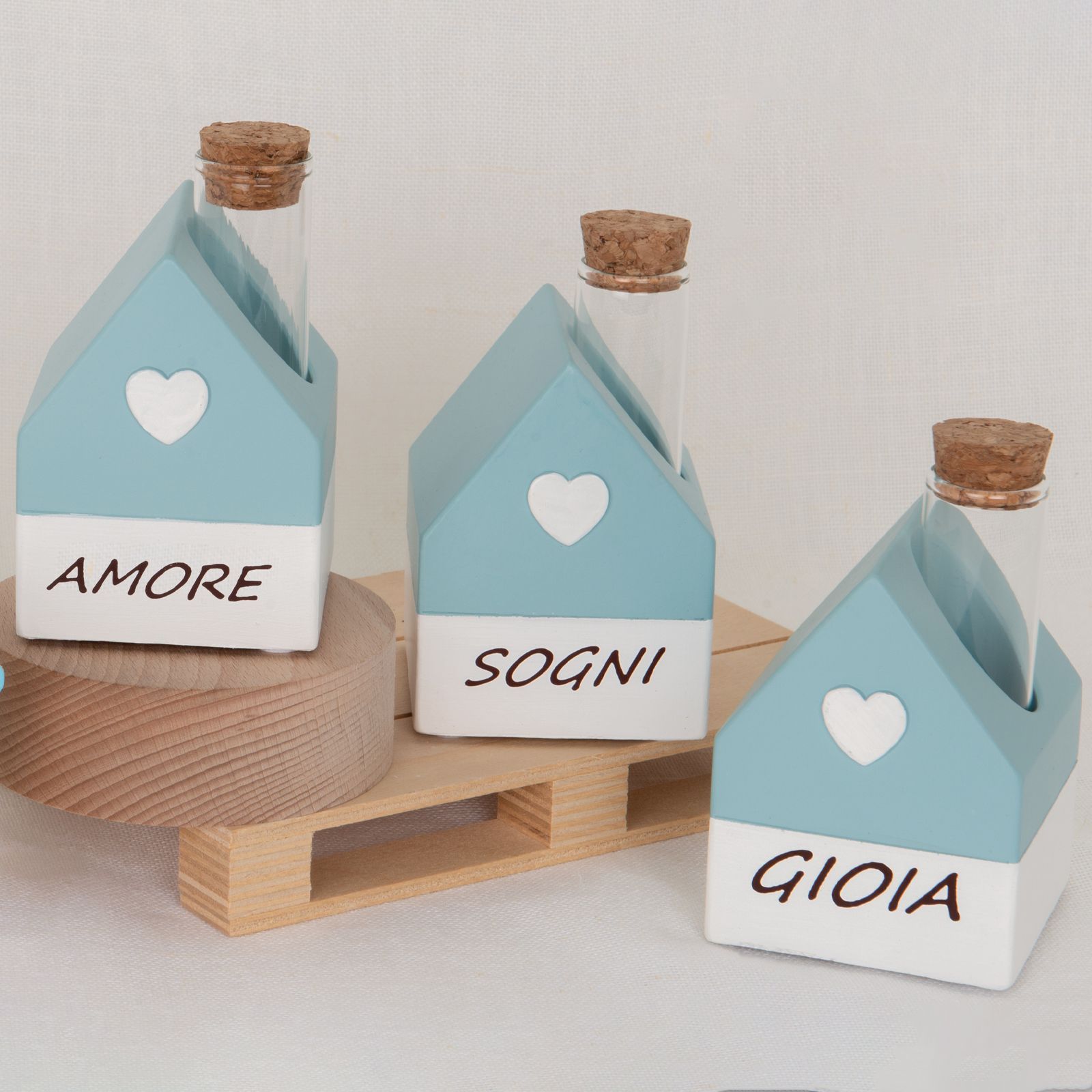 Questa deliziosa bomboniera è il regalo perfetto per celebrare la nascita di un bimbo o un battesimo. Le scatoline a forma di casetta, con la parte superiore azzurra e un cuoricino bianco, sono simbolo di amore, gioia e sogni. Realizzate in resina di alta qualità e con dimensioni di circa 6x6x8 cm, sono ideali per arricchire la tavola della confettata e come segnaposto per gli invitati.