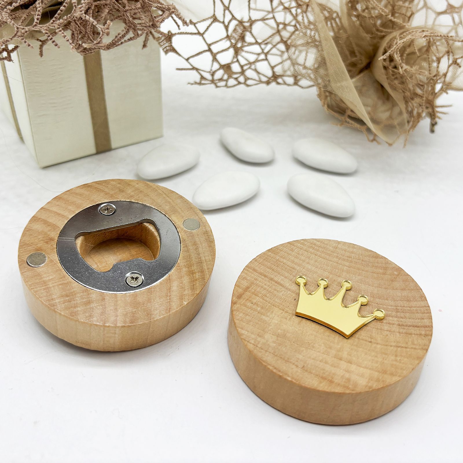 Questo apribottiglia magnetico con applicazione a corona è un regalo indimenticabile per i tuoi invitati, simbolo di amicizia e gratitudine.