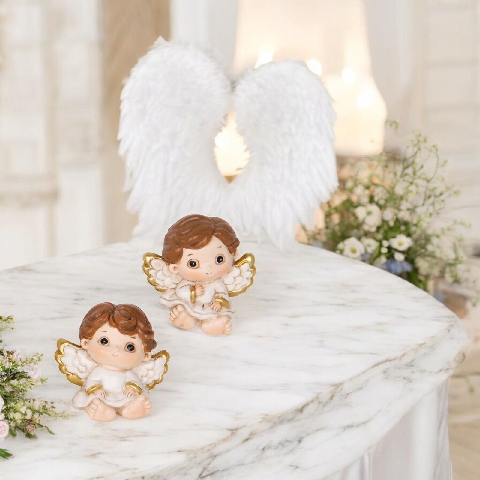 Ideato per essere molto più di un semplice dono, questo angioletto è un simbolo di benedizione e speranza, che racchiude il significato profondo dei momenti di fede. I genitori del festeggiato possono scegliere tra due varianti di posizione, creando un ricordo personalizzato e unico per i propri ospiti. Aggiungendo questo piccolo gioiello tra le bomboniere, è possibile esprimere gratitudine e affetto a chi ha partecipato a una giornata così significativa.
