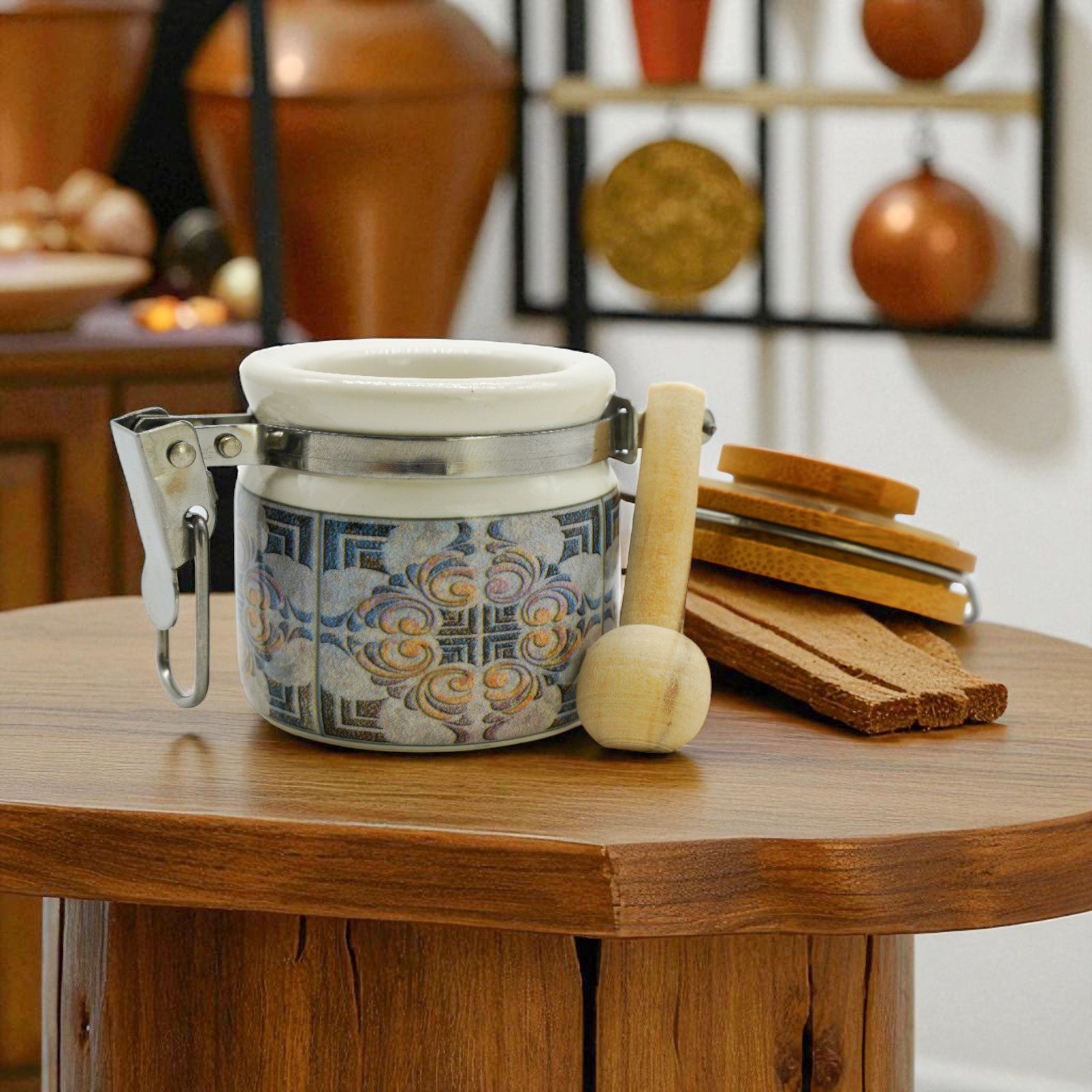 Disponibile in due dimensioni: - Standard: h. 6 cm circa; Grande: h. 8 cm circa, questo barattolino può trasformarsi in un pratico portaspezie, unendo bellezza e funzionalità. È un pensiero che non finirà dimenticato in un cassetto, ma che troverà posto nella vita quotidiana del destinatario.