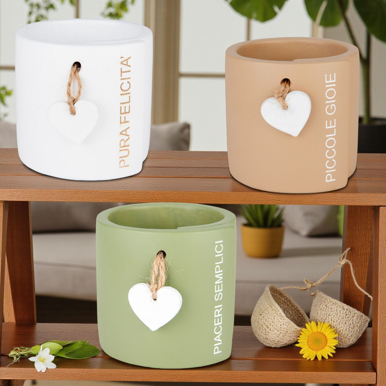 Scopri il nostro vaso portapiante con cuorcino pendente, un regalo unico e ricco di significato. Perfetto per eventi speciali come matrimoni, comunioni e cresime, questa bomboniera rappresenta un gesto d'amore e di gratitudine. Ogni vaso è decorato con frasi incantevoli come "Pura felicità", "Piccole gioie" e "Piaceri semplici", capaci di esprimere emozioni profonde e di lasciare un ricordo duraturo nei cuori dei tuoi ospiti.