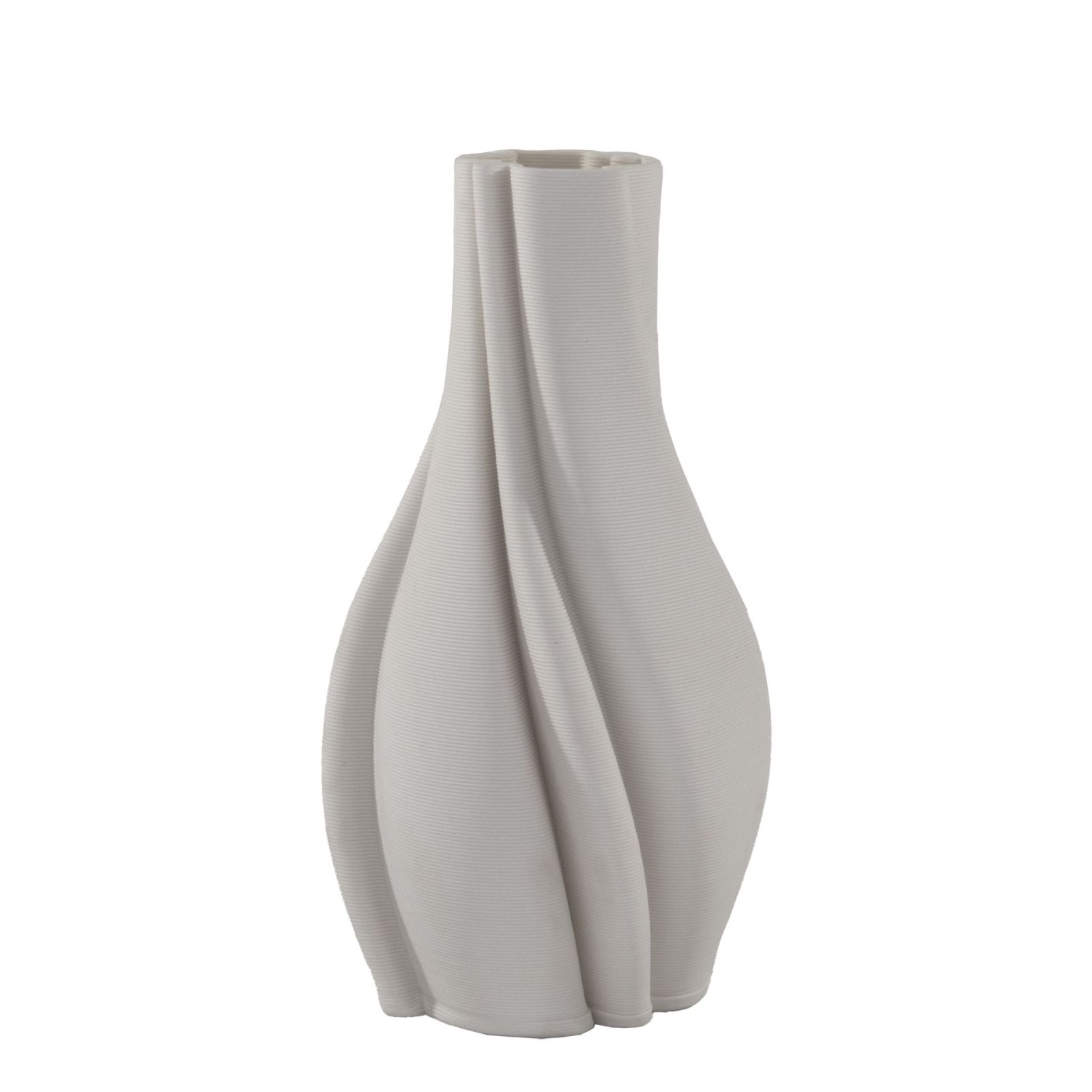 Realizzato in pregiata porcellana di colore panna, il vaso cattura l'attenzione grazie alla sua incantevole trama rigata e alla forma armoniosa che ricorda le onde del mare. Utilizzabile in molteplici occasioni, questo oggetto si trasforma in un elemento decorativo dal forte impatto visivo, capace di arricchire qualsiasi ambiente domestico e di far brillare la tua idea di bomboniera originale.