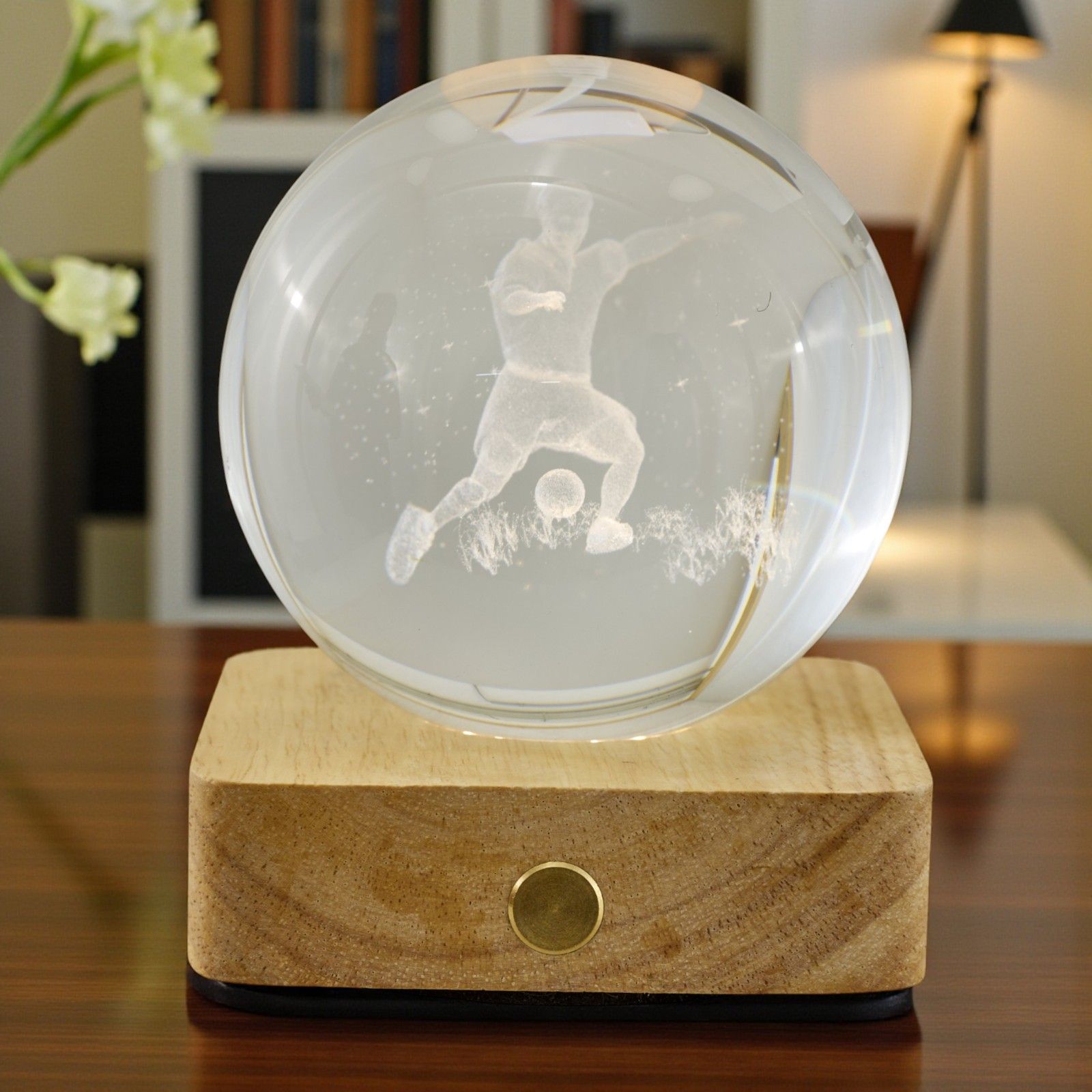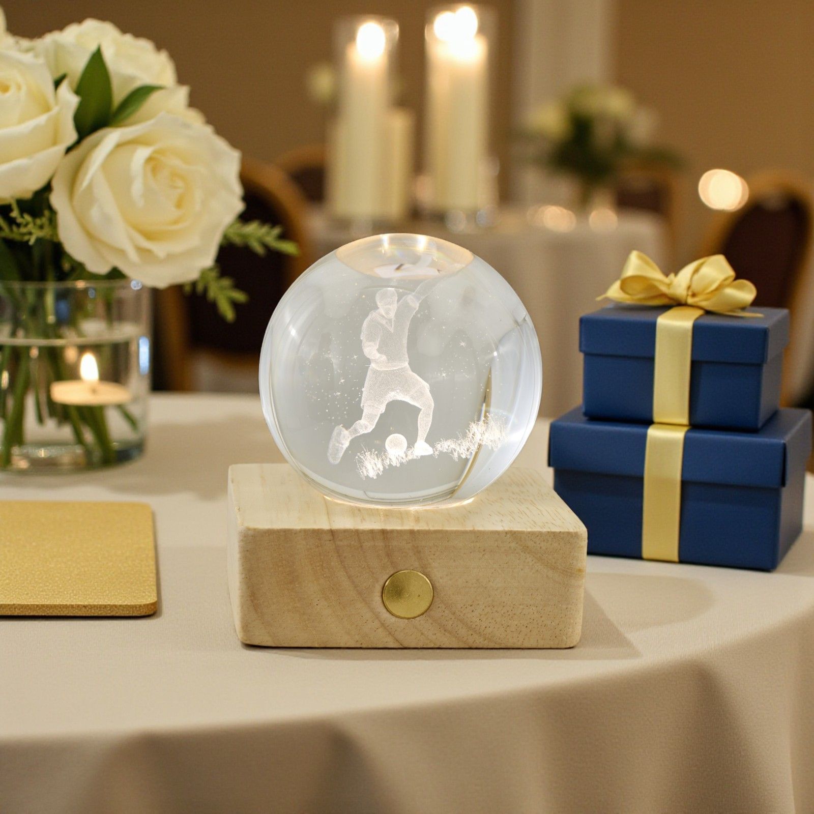 Realizzata con materiali di alta qualità, la base color legno naturale in combinazione con il vetro offre un design elegante e moderno, rendendo questa bomboniera originale un elemento distintivo per ogni festa. Non solo un oggetto decorativo, ma un simbolo di passione e dedizione, perfetto per i piccoli amanti del calcio. Sorprendi i tuoi ospiti con un pensiero che parla di emozioni e ricordi indelebili.