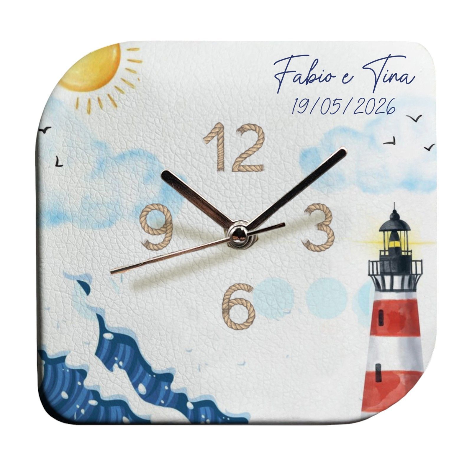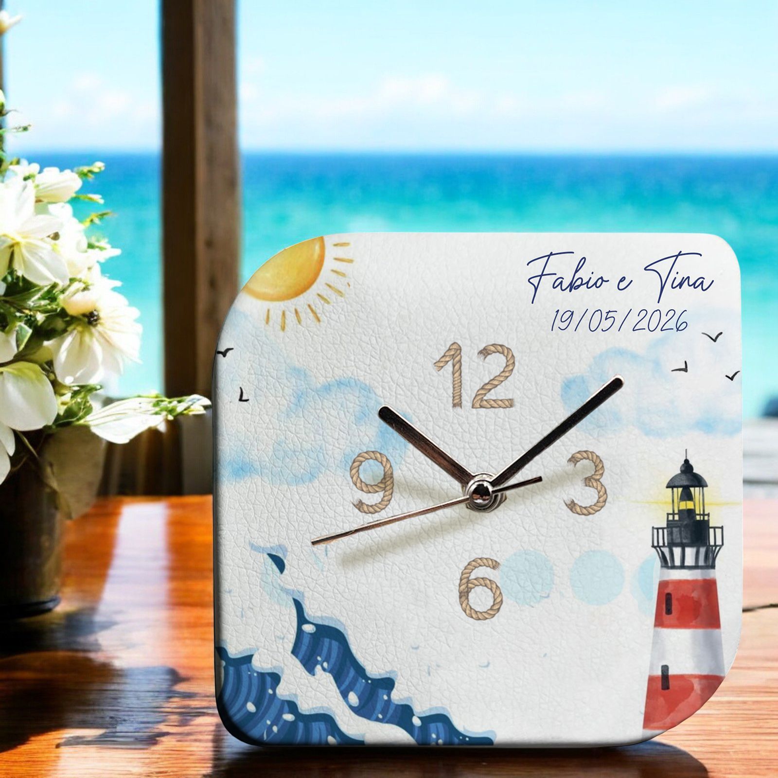I colori pastello e il tema mare con faro, onde e sole la rendono perfetta per un evento legato al mare e alla natura. Le tonalità morbide e la raffinatezza del design aggiungono un tocco di eleganza e freschezza a qualsiasi evento.