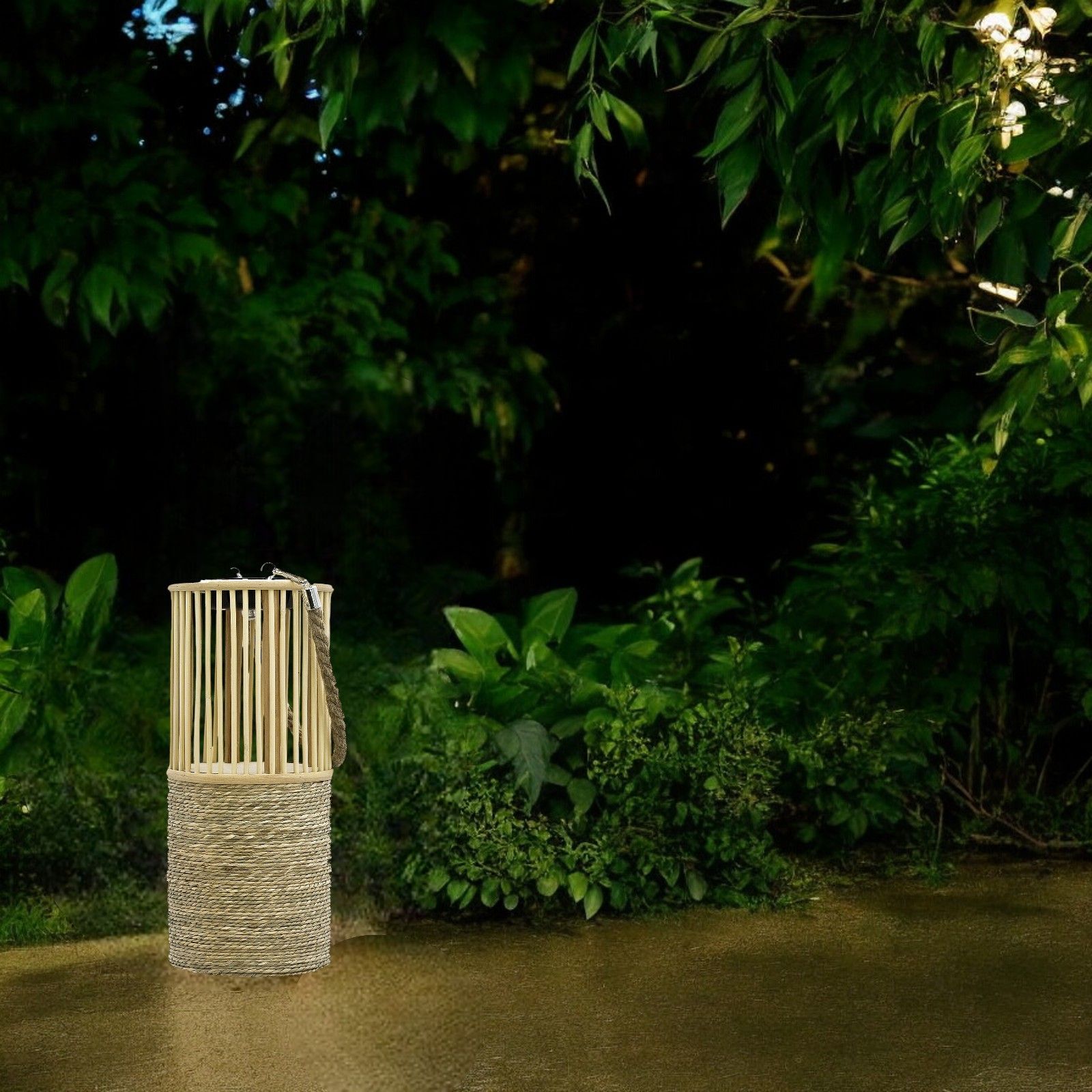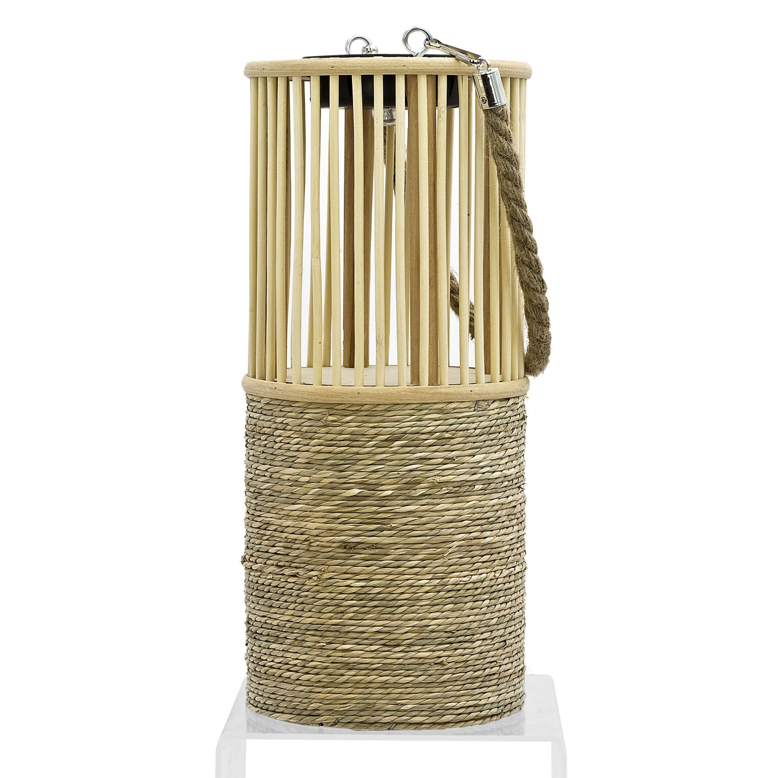 Perfetta per matrimoni, anniversari o eventi a tema mare, questa lanterna cilindrica in corda e legno è un'idea utile e elegante per i tuoi invitati. Dotata di un pannello solare, si accende automaticamente al buio, creando una luce soffusa e romantica. Ideale per chi cerca una decorazione casa o un arredo giardino che aggiunga un tocco di classe all'ambiente.
