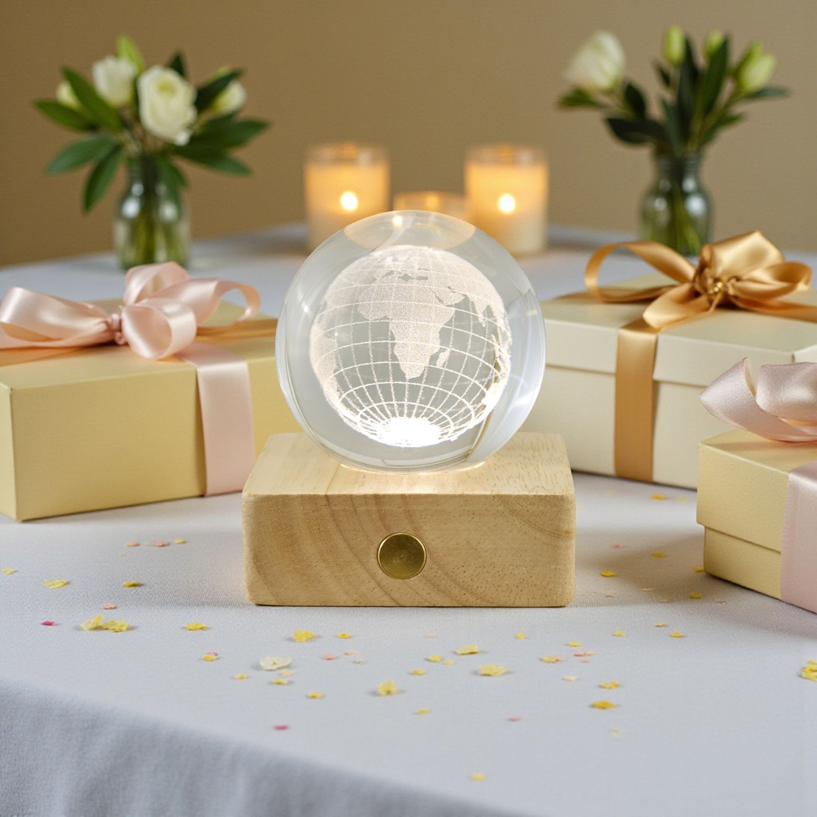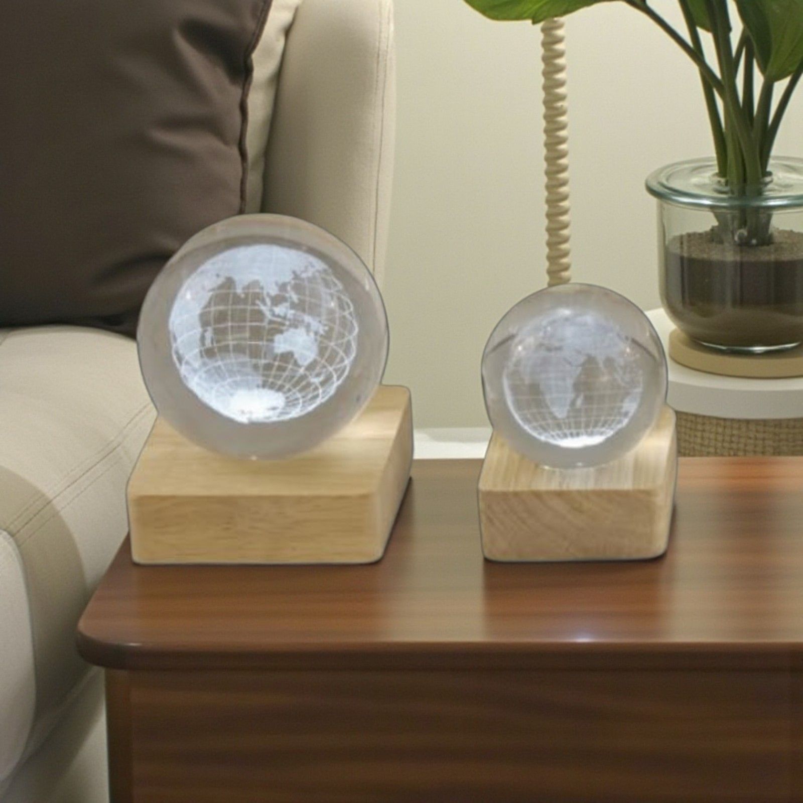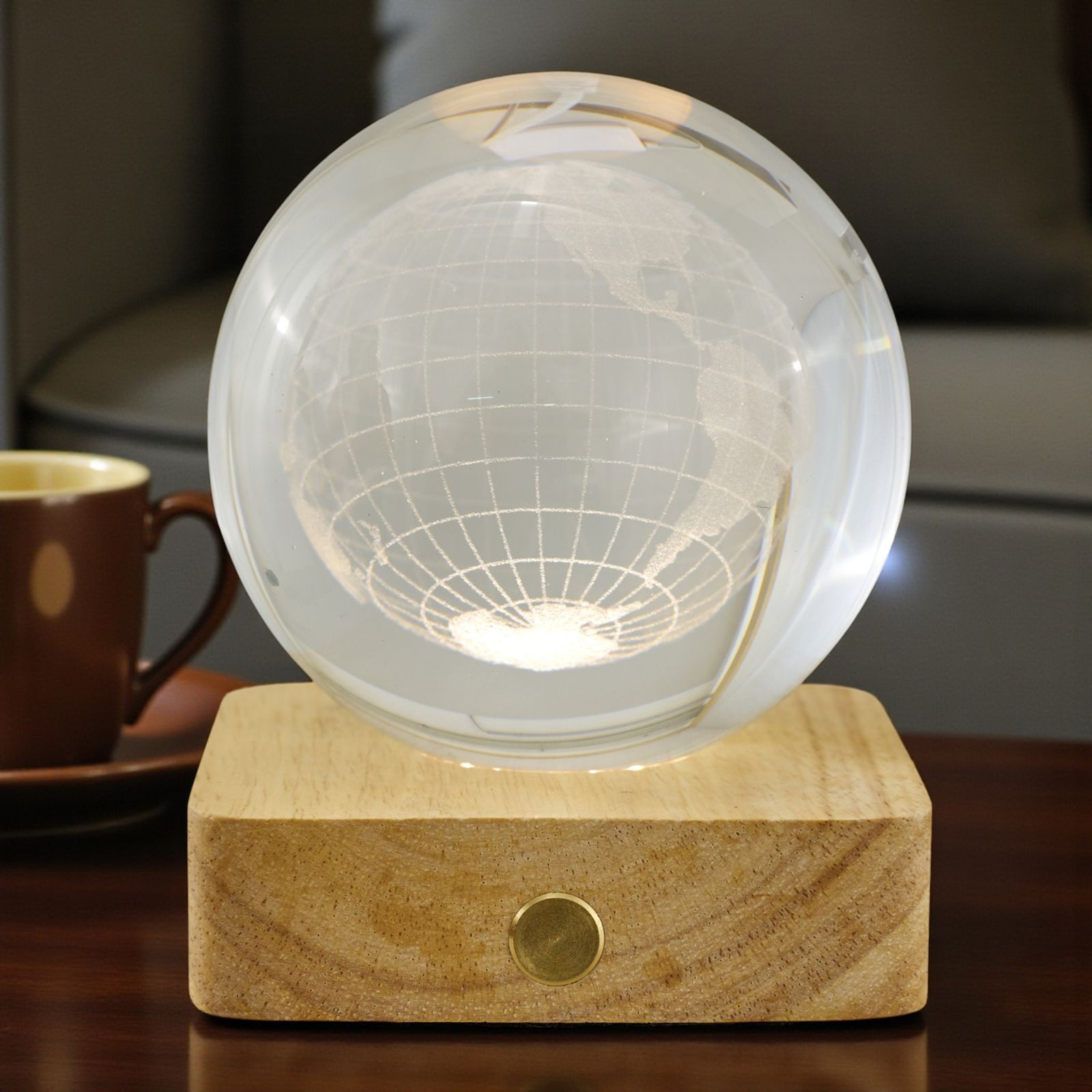 Realizzata con una base in legno naturale che esalta il suo design elegante, la lampada si illumina per rivelare un mondo di possibilità. Ogni volta che si accende, il mappamondo al suo interno ci ricorda che ogni viaggio inizia con un passo, e ogni passo è un'opportunità per creare ricordi indimenticabili con le persone più care.