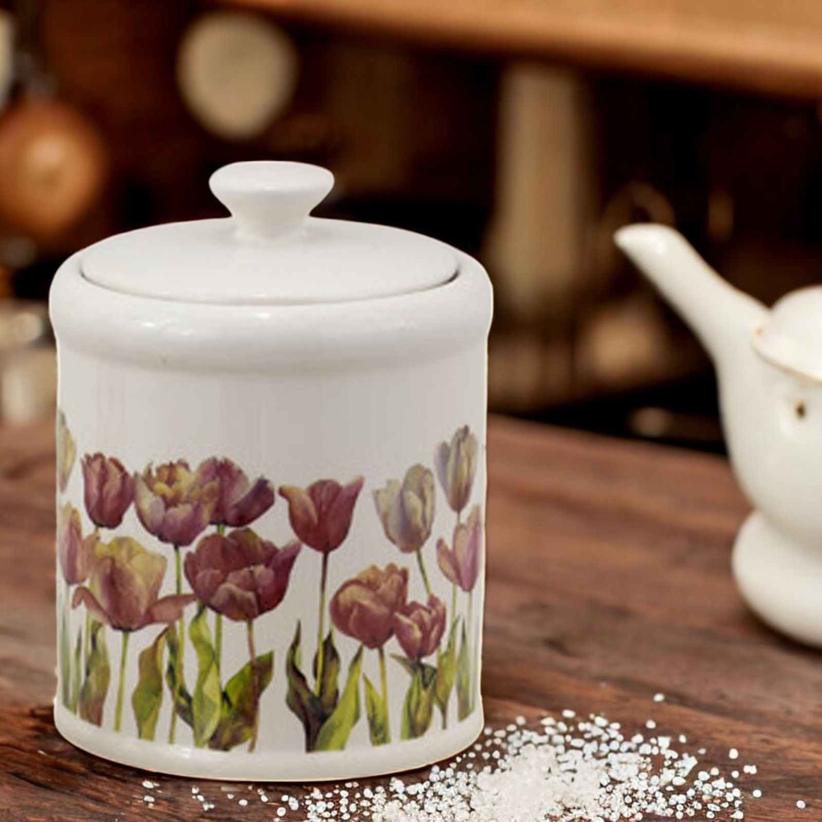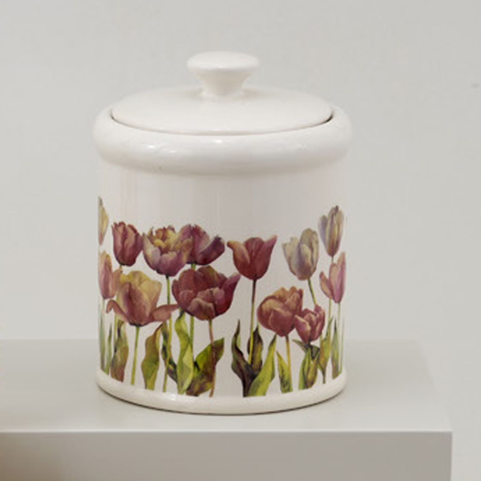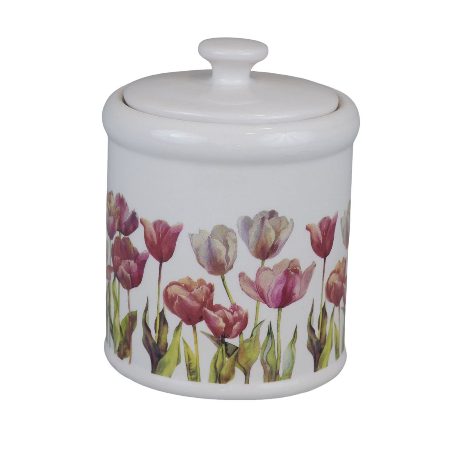 Questa elegante bomboniera è perfetta per celebrare momenti speciali come matrimoni e anniversari. Realizzata in ceramica di alta qualità, il barattolo con coperchio presenta un delicato decoro floreale pastello con tulipani nelle sfumature del rosa.