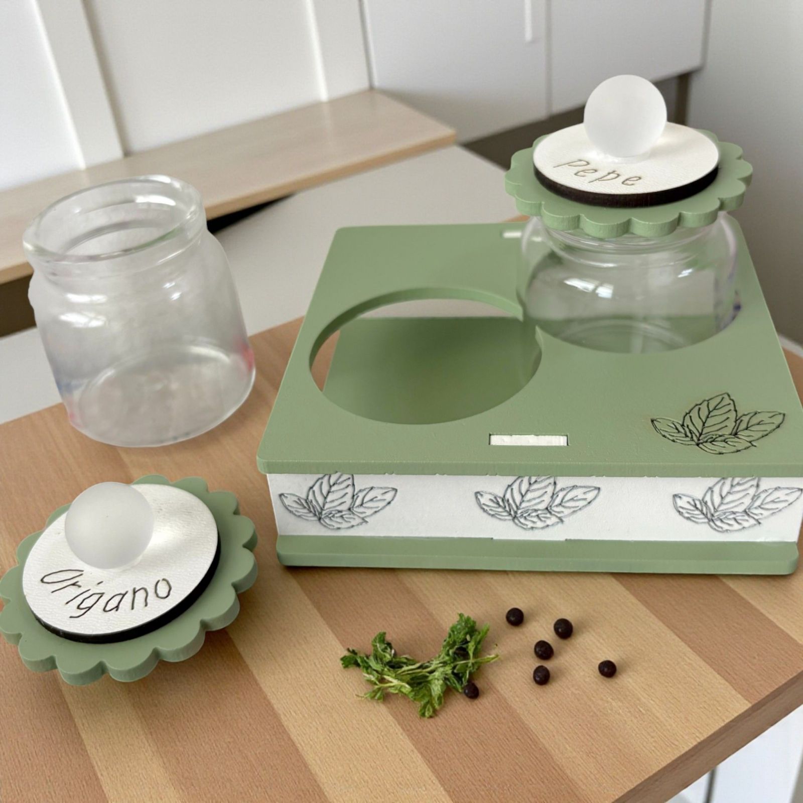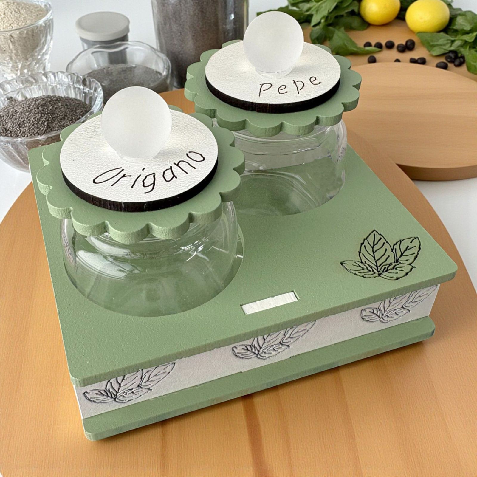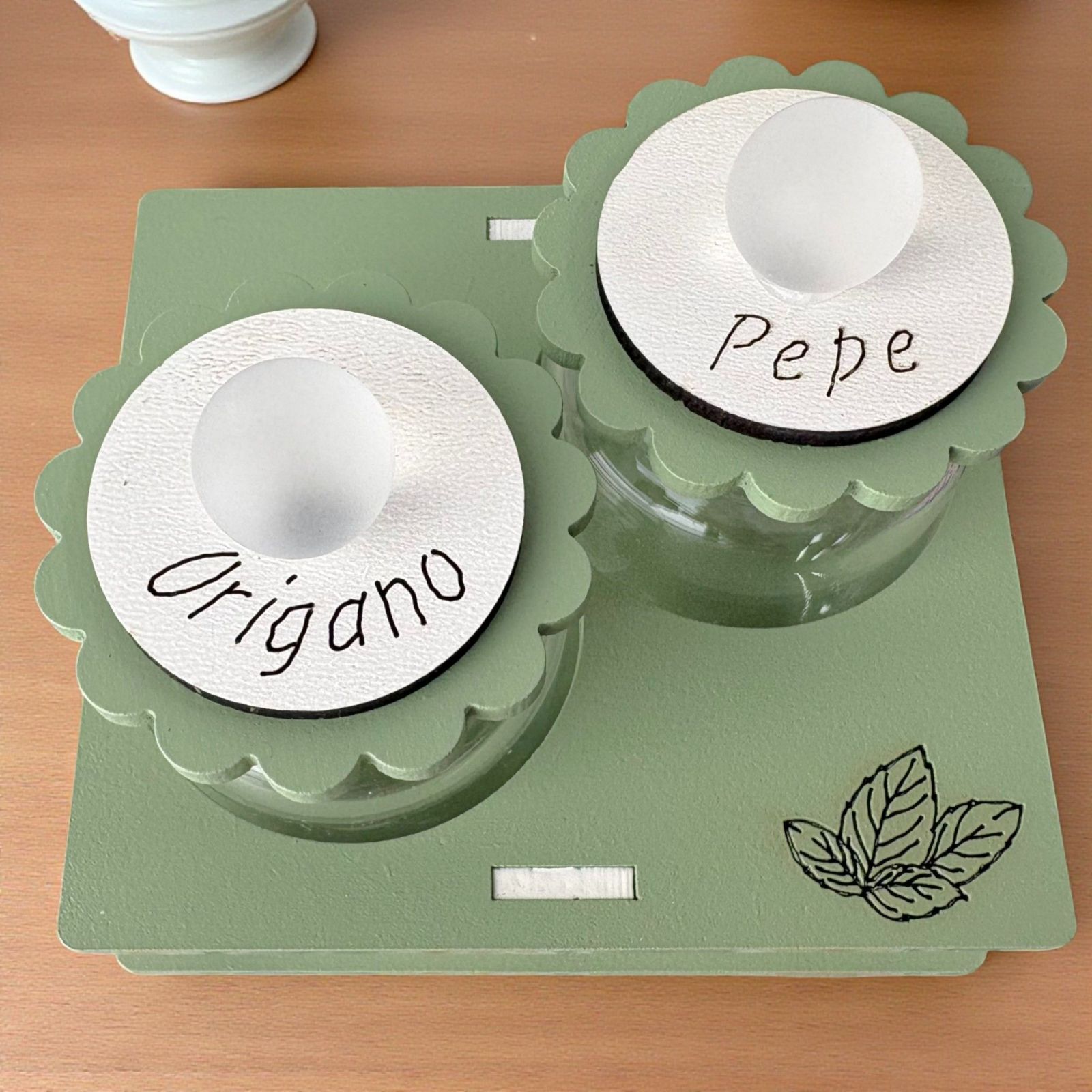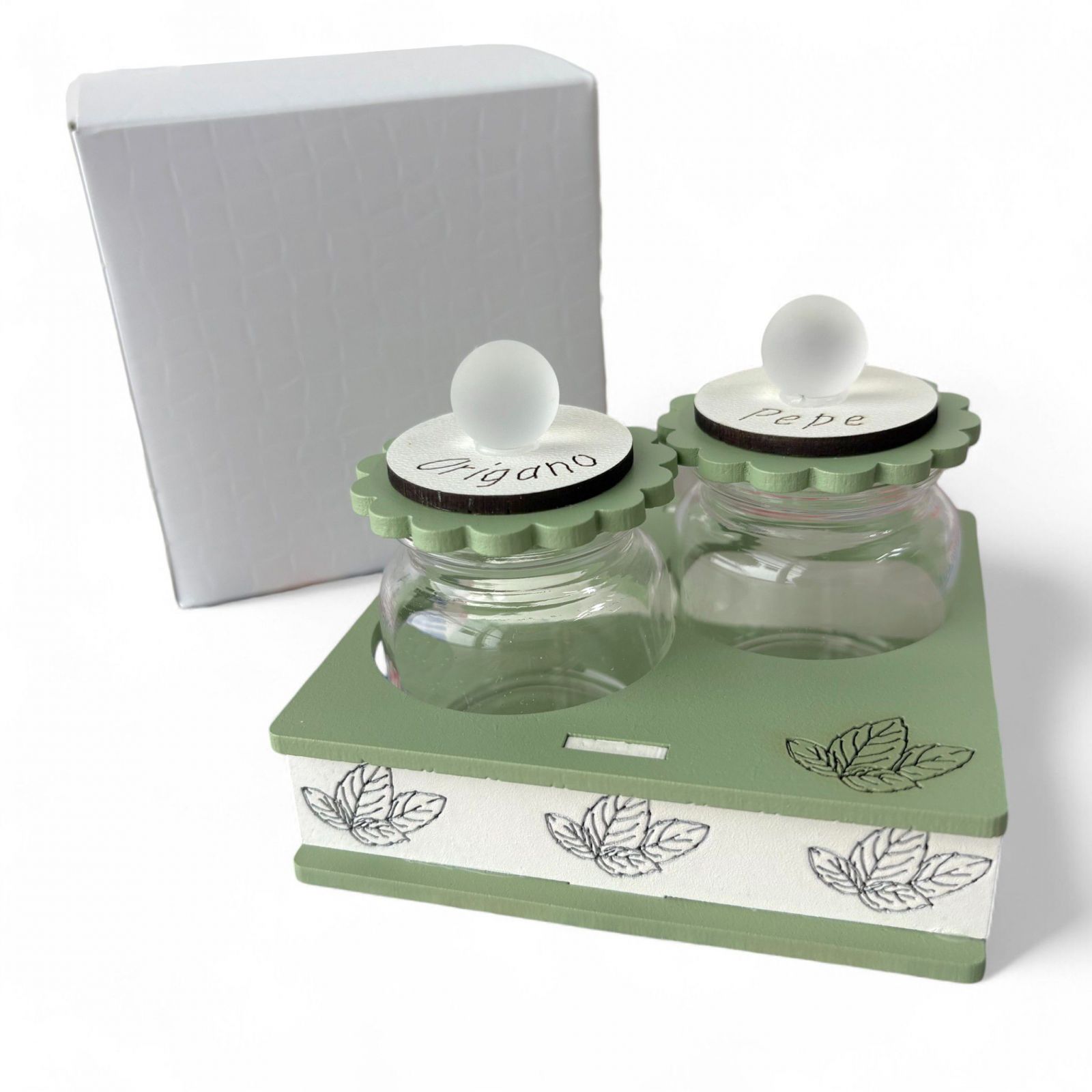 Lasciati conquistare da questo porta spezie dal color verde salvia, capace di aggiungere un tocco di eleganza a qualsiasi ambiente. Ogni volta che utilizzeranno le spezie contenute, i tuoi cari ricorderanno quel giorno speciale, rendendo il tuo dono un simbolo di affetto e gratitudine.