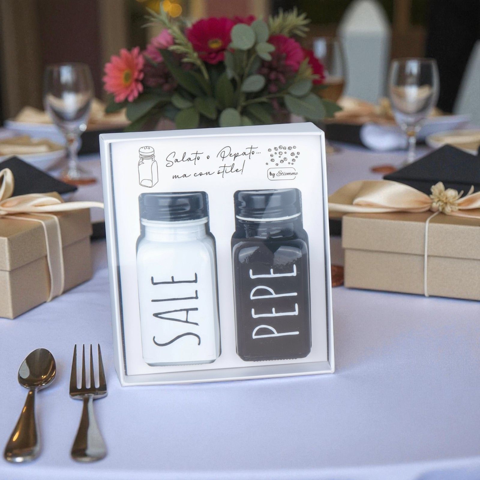 Un dono speciale come il nostro set sale e pepe è l'ideale per celebrare momenti unici come matrimoni e anniversari. Con la scritta "Salato e pepato ma con stile", queste bomboniere aggiungono un tocco di eleganza e originalità alla tua festa. Ogni volta che i tuoi ospiti utilizzeranno questi eleganti accessori, ricorderanno il giorno speciale con affetto.