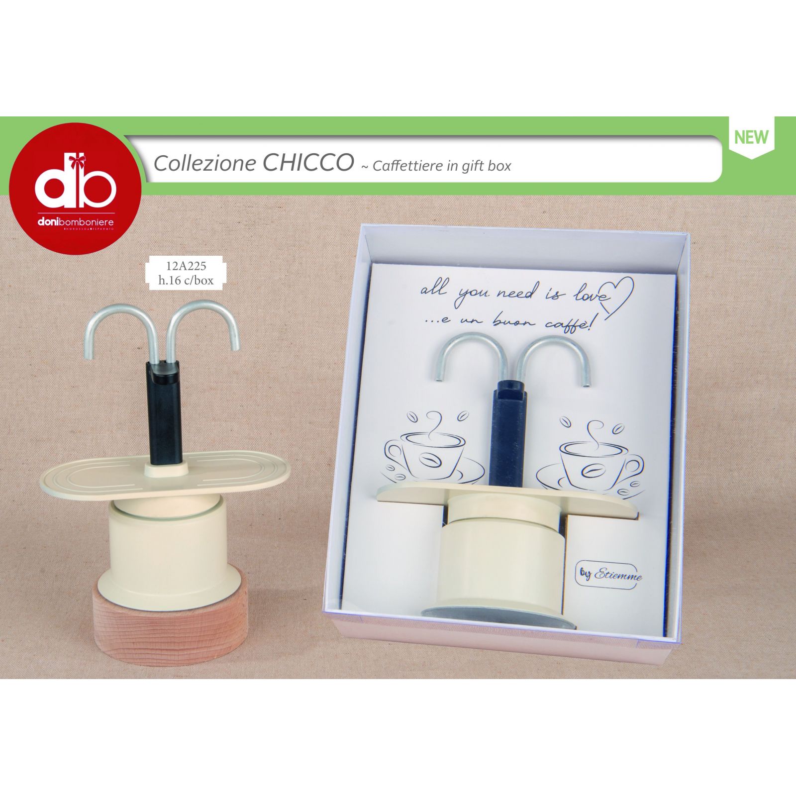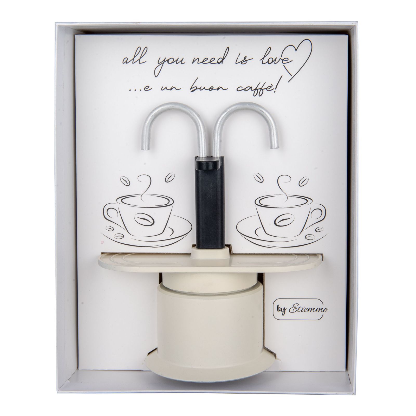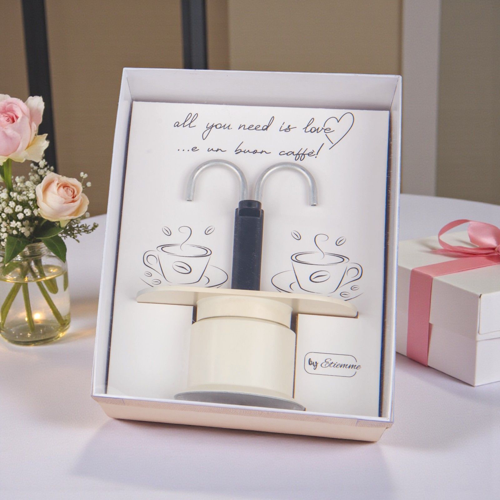 La caffettiera per 2 tazze rappresenta un gesto d'amore unico e speciale, perfetta per celebrare momenti indimenticabili come matrimoni e anniversari. Con il suo messaggio interno alla scatola "All you need is love e un buon caffè", questa bomboniera è più di un semplice oggetto: è un simbolo di connessione e calore tra le persone. Ogni sorso di caffè diventa un ricordo prezioso da condividere, rendendo ogni evento ancor più significativo.