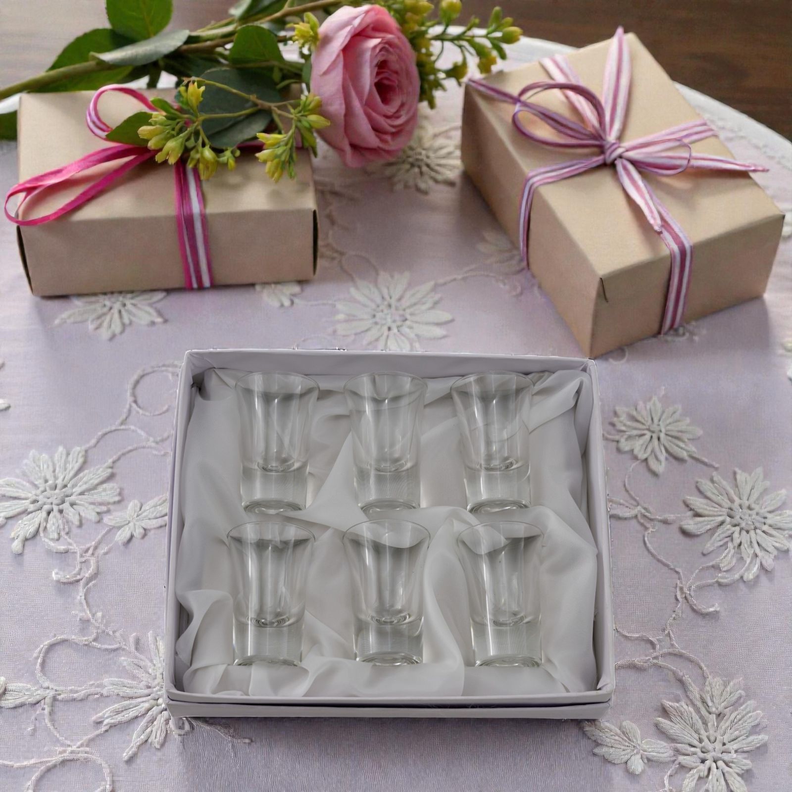 Optare per questo set non significa solo scegliere un oggetto decorativo, ma anche un modo per esprimere gratitudine e affetto verso i tuoi invitati. Ogni bicchiere racconta una storia di amore e amicizia, perfetto per chi cerca bomboniere economiche senza rinunciare a qualità e stile. Con il nostro set, ogni brindisi diventa un momento di celebrazione, un rituale da condividere con chi ami di più.
