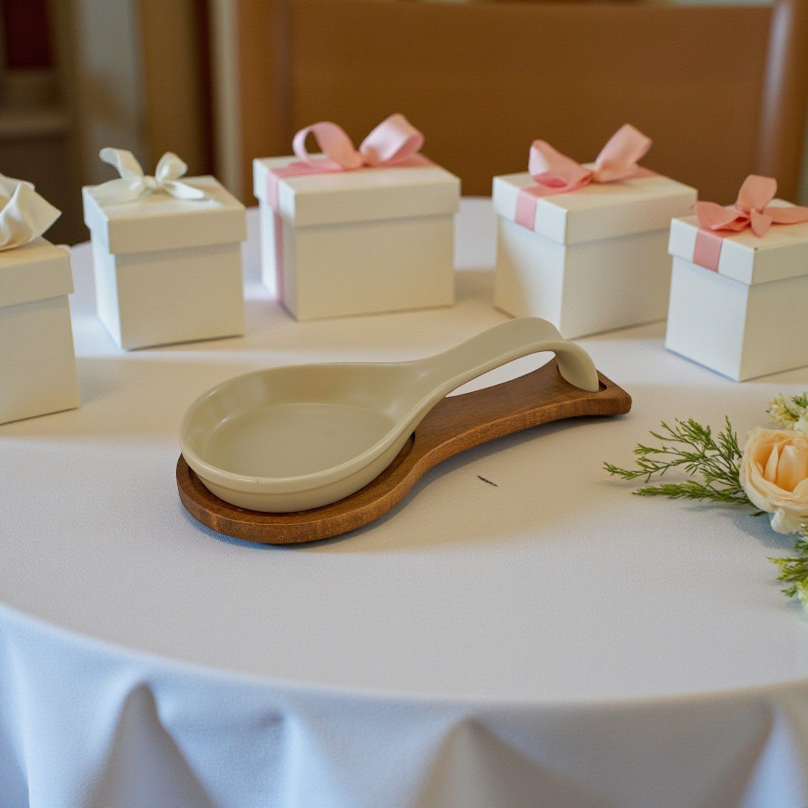 Il suo design moderno e originale, con tonalità tortora che si abbinano perfettamente a qualsiasi stile di cucina, la rende un regalo versatile. Non è solo un oggetto, ma un segno tangibile di gratitudine verso i tuoi testimoni e gli ospiti, un modo per portare un pezzo del tuo giorno speciale nelle loro case. Le bomboniere matrimonio devono raccontare una storia, e con questo poggiamestolo lo faranno con classe e stile.