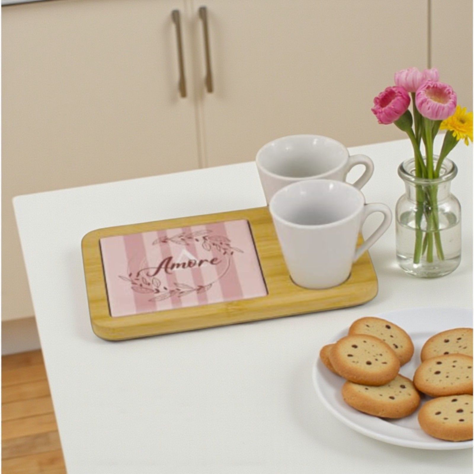 Realizzate in ceramica di alta qualità e accompagnate da un elegante vassoio in legno e ceramica, queste bomboniere utili ed economiche si distinguono per la loro originalità e per la varietà di colori assortiti: giallo, rosa e verde ai quali corrispondono le parole "Gioia", "Amore", "Felicità". Un'ottima scelta anche come bomboniere matrimonio o bomboniere anniversario, sono destinate a rimanere nel cuore dei tuoi cari.
