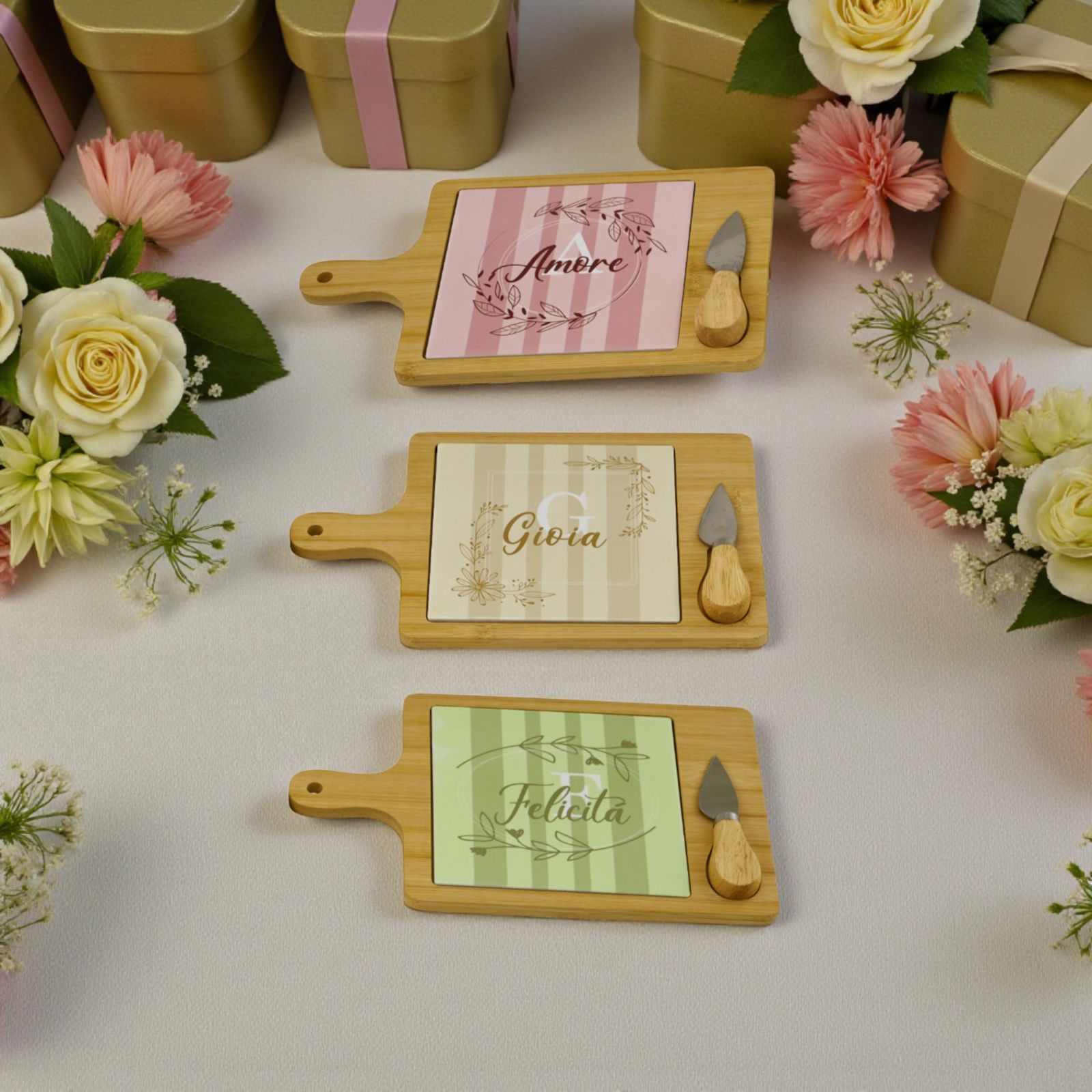 Quando si tratta di festeggiare un matrimonio o un anniversario, ogni dettaglio conta. Questo set tagliere e coltellino decorato è l'idea perfetta per una bomboniera che non solo colpisce per la sua bellezza, ma porta con sé un significato profondo. Ogni volta che i vostri ospiti useranno questo set, saranno ricordati della vostra giornata speciale, creando nuovi ricordi insieme.