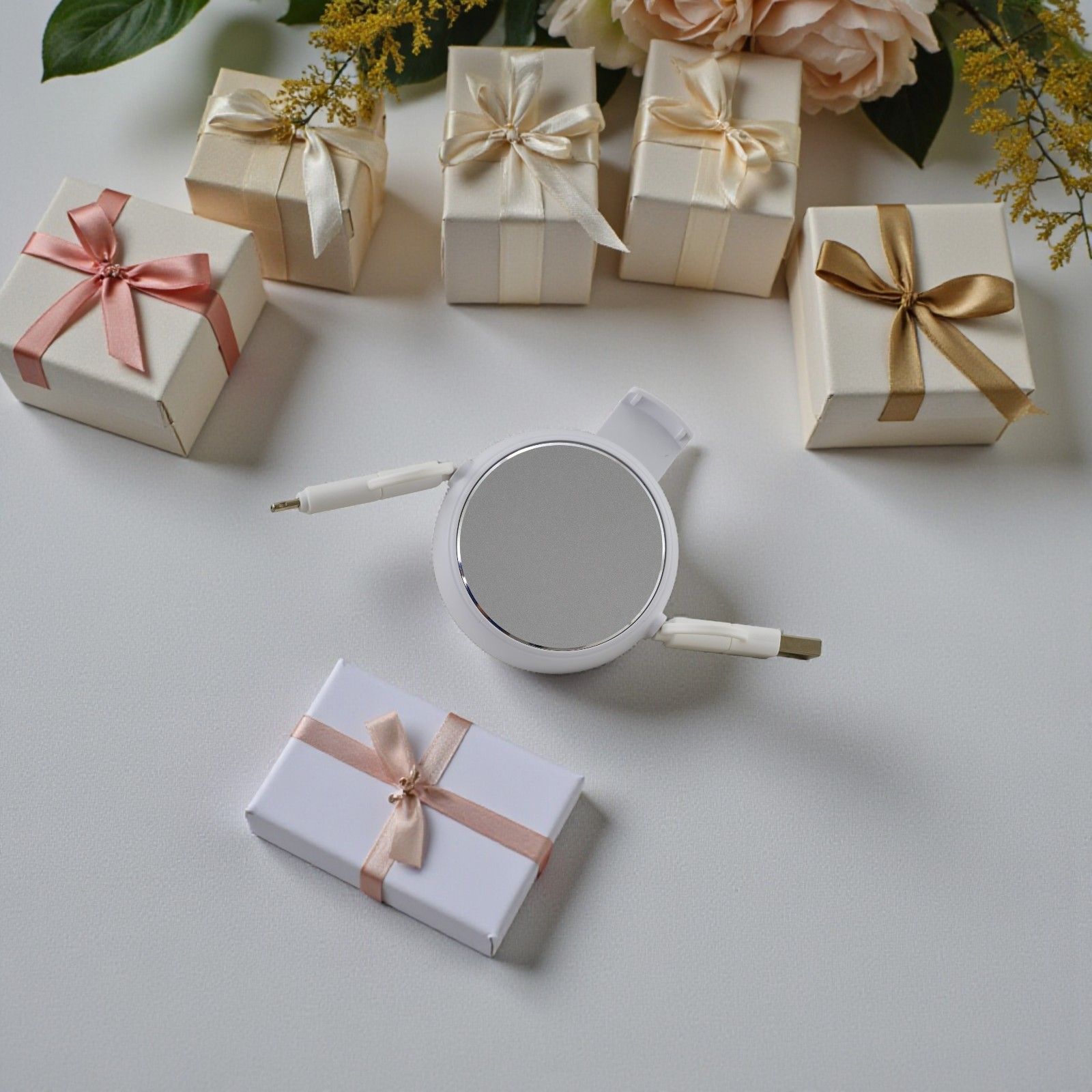 La tecnologia incontra l'eleganza con i nostri cavetti USB espandibili e retrattili, un’idea regalo innovativa e pratica per celebrare momenti speciali come compleanni, diciottesimi e lauree. Questi eleganti accessori bianchi non sono solo utili, ma rappresentano anche un gesto di cura verso chi li riceve, rendendo ogni occasione ancora più memorabile.