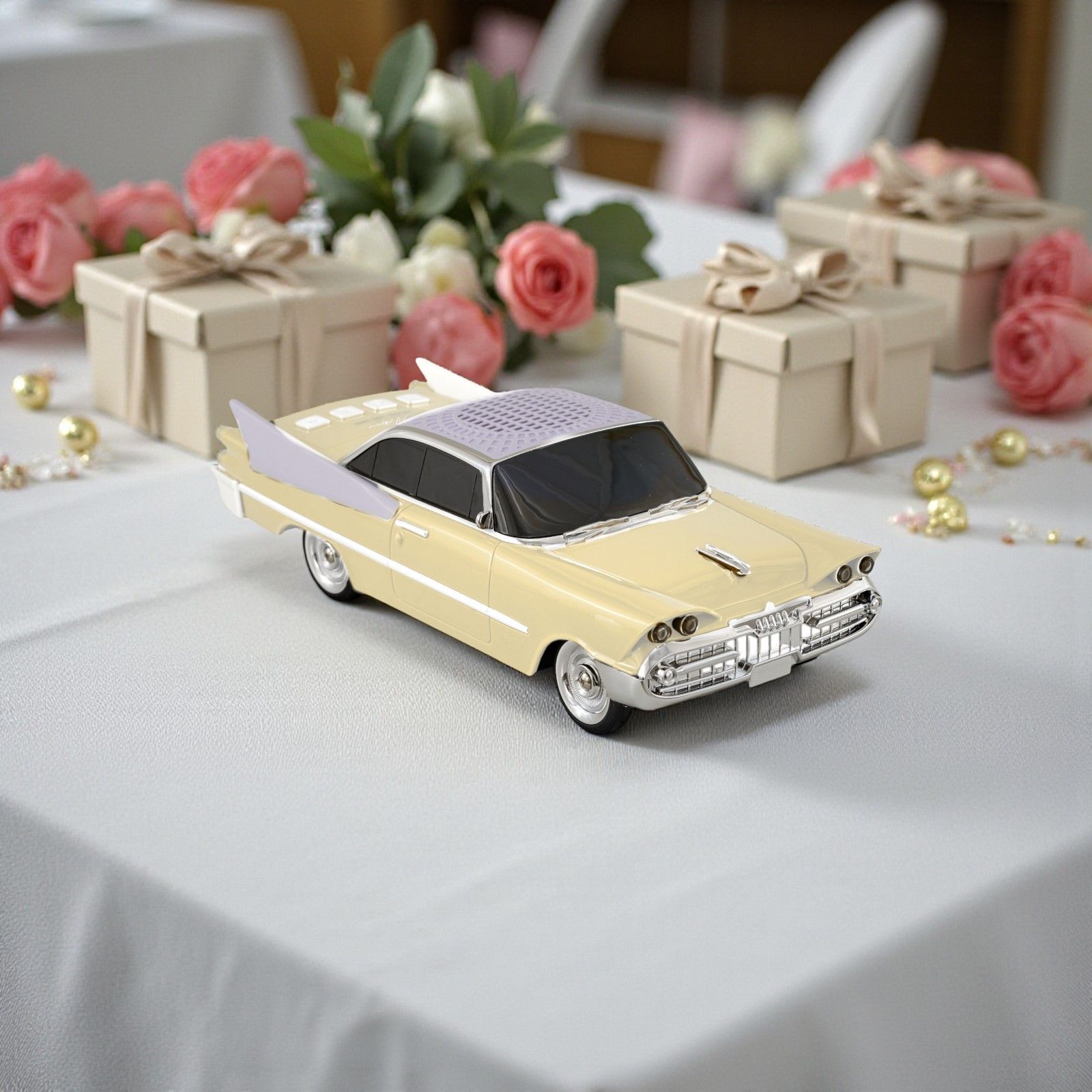 Un’esperienza indimenticabile può iniziare con un semplice gesto, e il nostro speaker a forma di Cadillac vintage color panna rappresenta l’essenza di questo messaggio. Ogni volta che il suono dolce della musica si diffonde nell'aria, i ricordi di momenti speciali si risvegliano, rendendo ogni occasione ancora più significativa. Perfetto per chi ama il vintage e le auto d'epoca, questo speaker è una celebrazione di stili e passioni che viaggiano nel tempo.